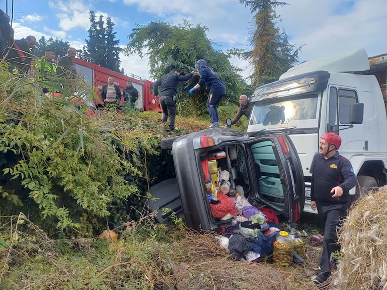 Otomobil sürücüsü H.K., kazayı yara almadan atlatırken, yanındaki eşi N.K. araçta sıkıştı. İhbar üzerine kaza yerine sağlık, itfaiye ve polis ekipleri sevk edildi. İtfaiye ekipleri., N.K.'yi sıkıştığı yerden kurtardı. N.K., sağlık ekiplerinin olay yerindeki ilk müdahalesinin ardından Salihli Devlet Hastanesine kaldırdı. Tedaviye alınan N.K.'nin sağlık durumunu iyi olduğu, hayati tehlikesinin bulunmadığı bildirildi. polis, kazayla ilgili soruşturma başlattı.(DHA)