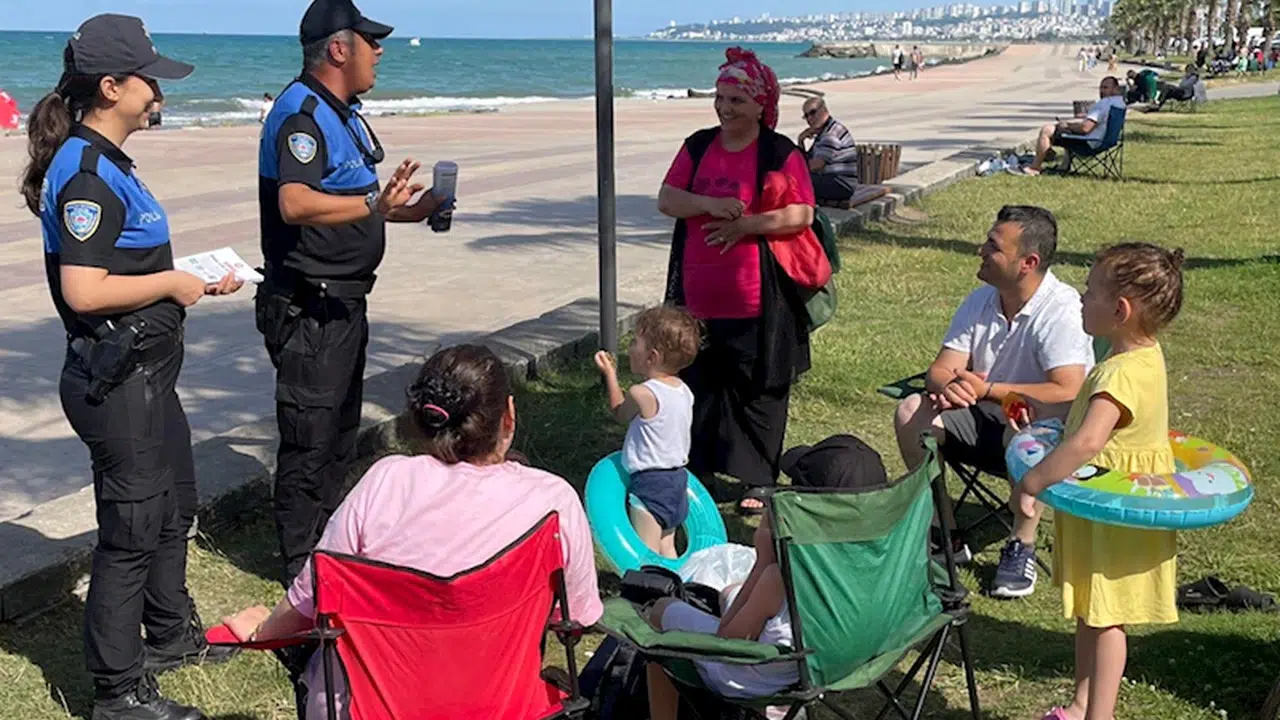 Samsun Toplum Destekli Polislik Şube Müdürlüğü personelince Körfez Mahallesi sahil şeridinde, "Tedbiri Bırakma, Akıntıya Kapılma Projesi" kapsamında vatandaşlar boğulma olaylarına karşı uyarıldı.