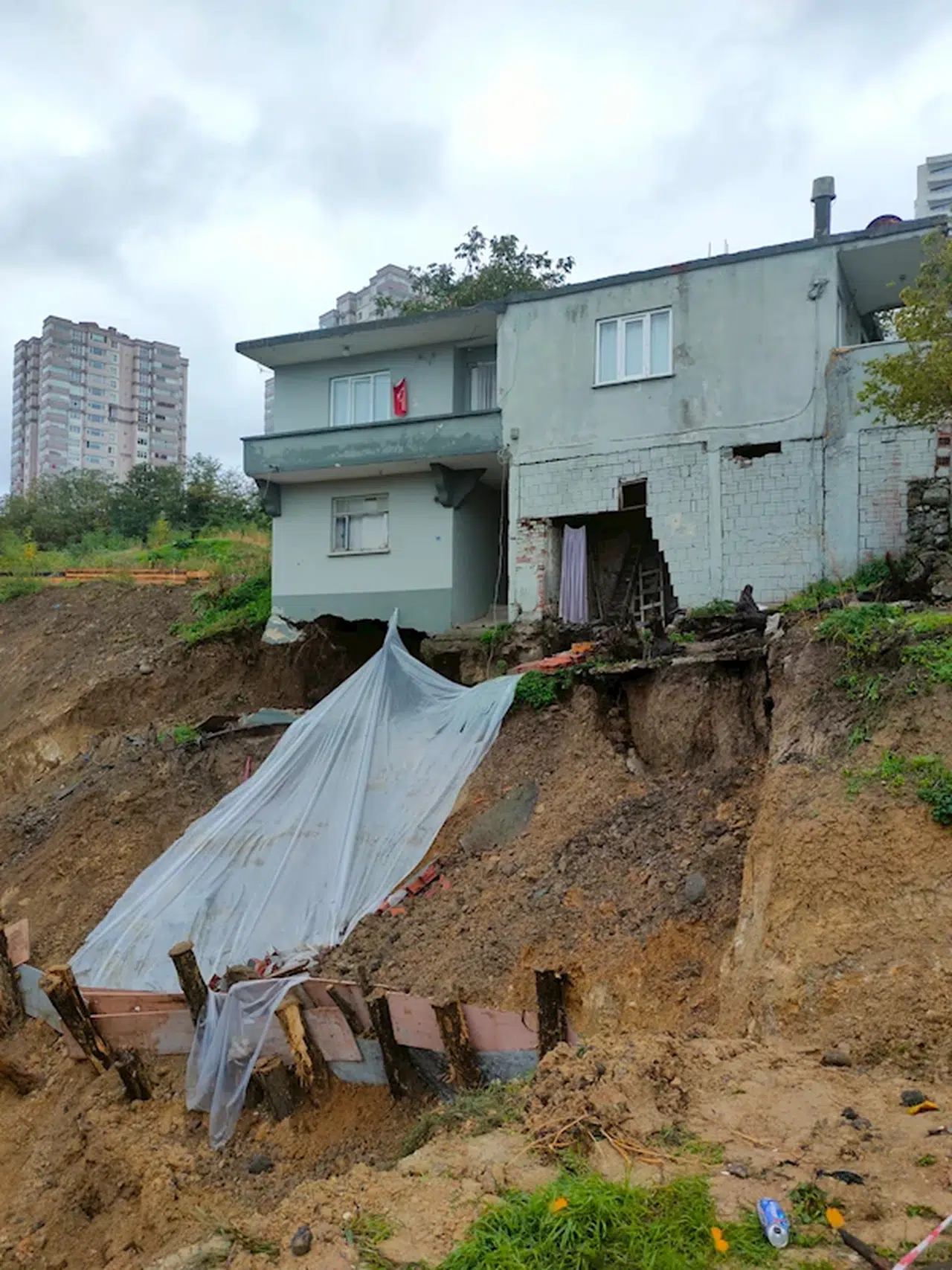 Samsun'da 2 katlı binanın temel kısmında toprak kayması