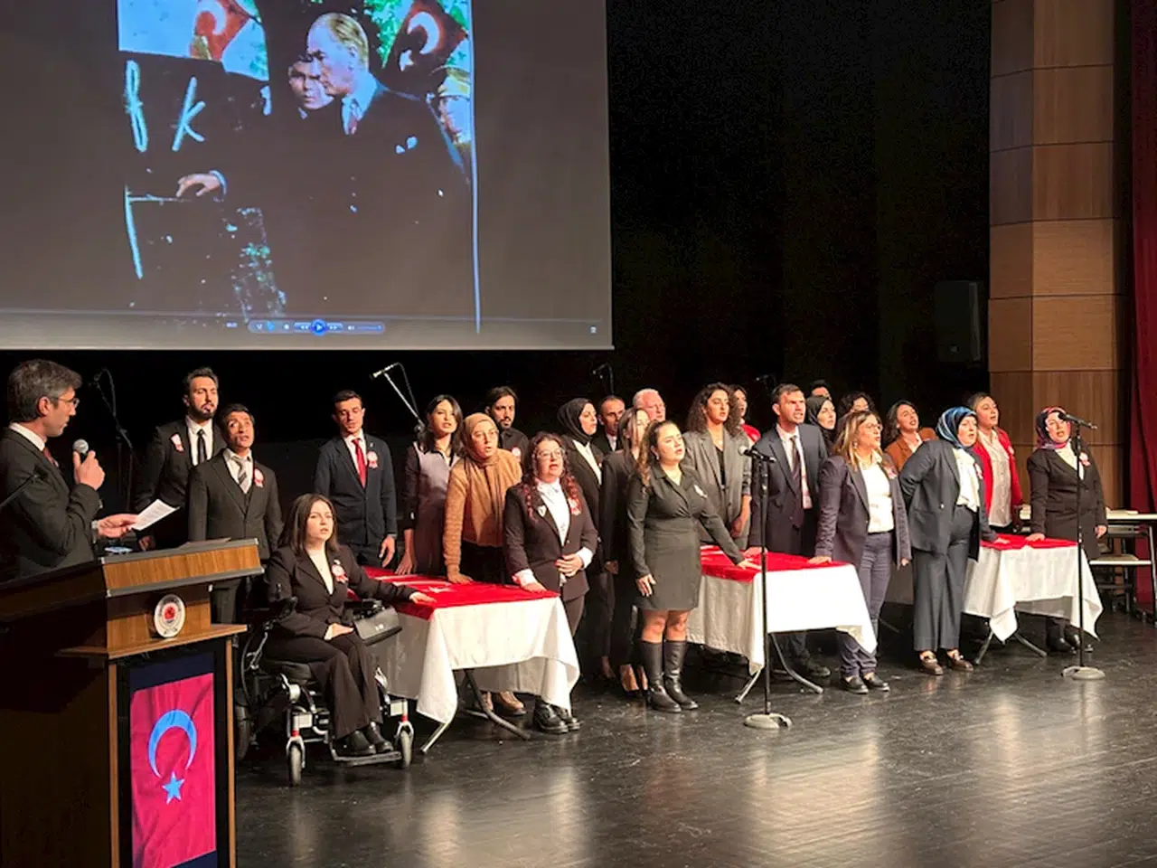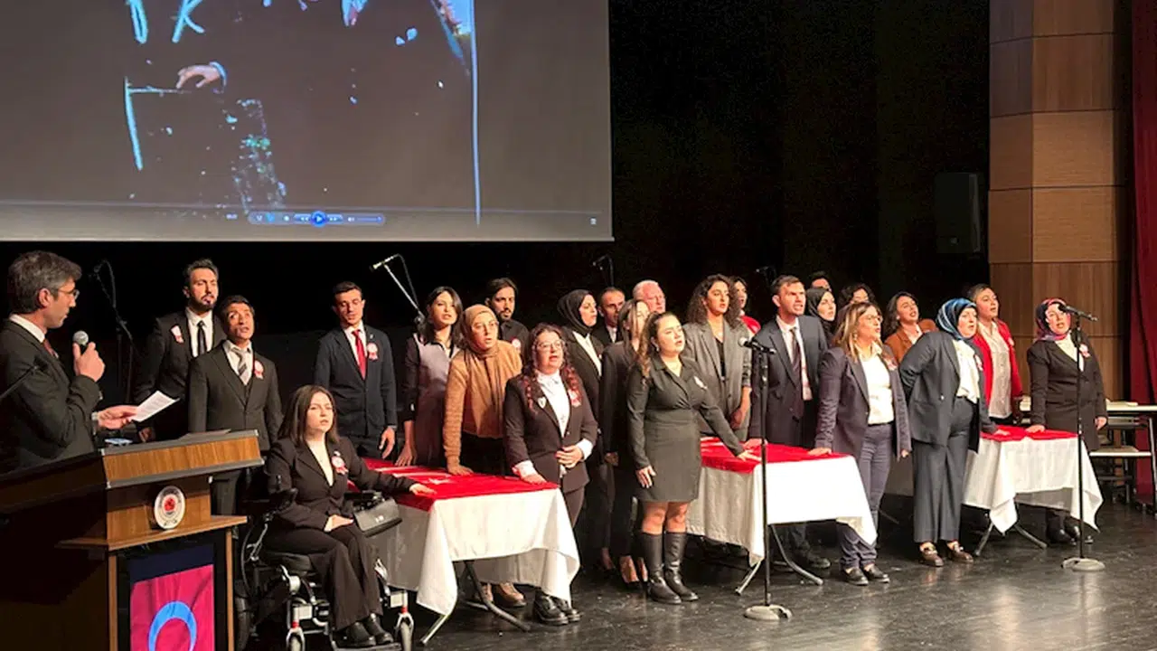 Konuşmaların ardından emekli öğretmenlere hizmet şeref belgeleri verildi, adaylıkları kalkan öğretmenler ise Öğretmenlik Meslek Yemini etti.