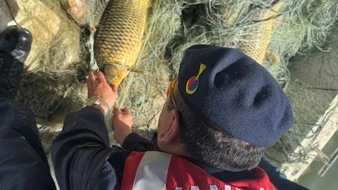 İl Jandarma Komutanlığı Çevre, Doğa ve Hayvanları Koruma Timi ile Bafra İlçe Tarım Müdürlüğü ekipleri, yaptıkları çalışmalar sırasında Bafra ilçesi Altınkaya Barajı'nda bin 500 metre uzunluğundaki ağın içerisinde yaklaşık 350 kilo sazan, 50 kilo yayın ve 60 adet ak balık olduğunu gördü. Ağın olduğu bölgeye açılan ekipler, ağa takılan balıkları doğal yaşama geri bıraktı. (DHA)