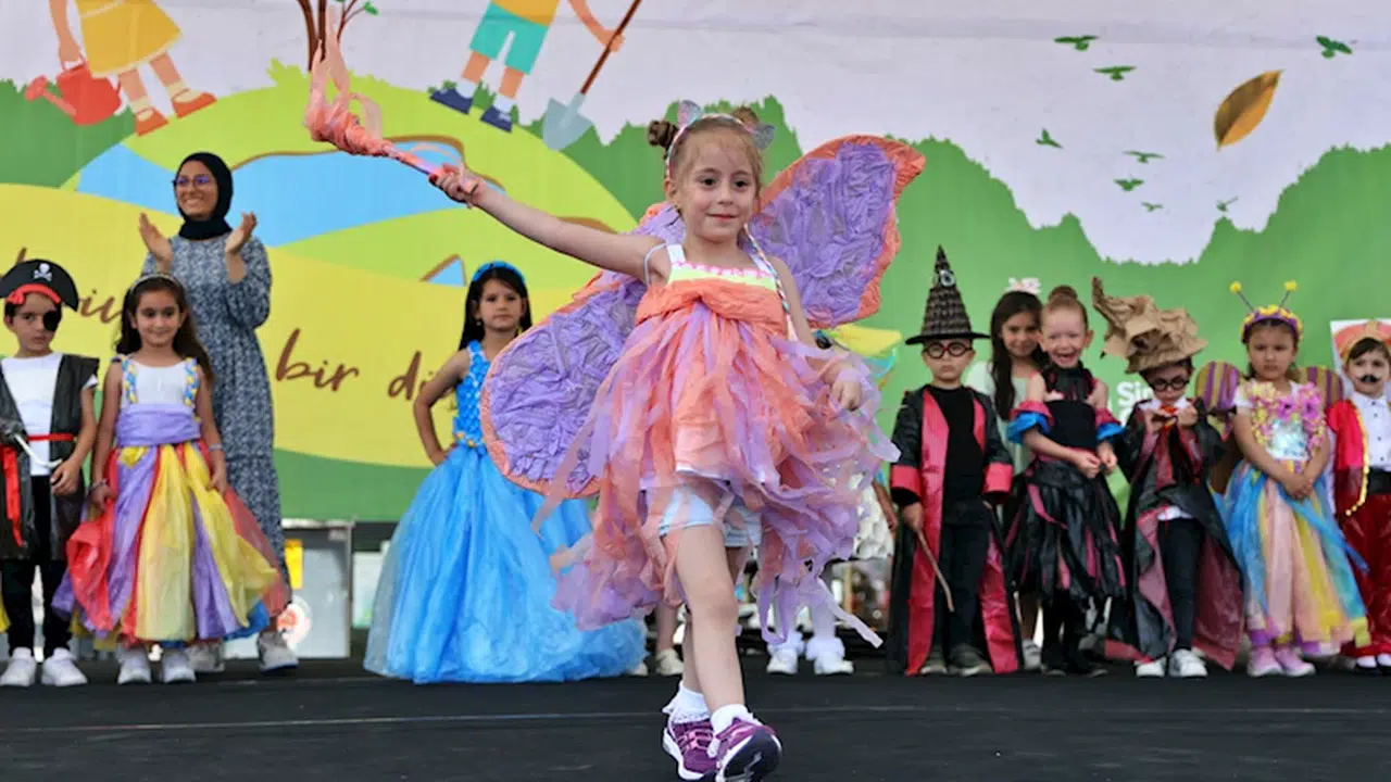 Bu kapsamda Nene Hatun Anaokulu 3-4 yaş grubu öğrencileri, atık malzemelerden tasarlanan kostümlerle defile sundu.