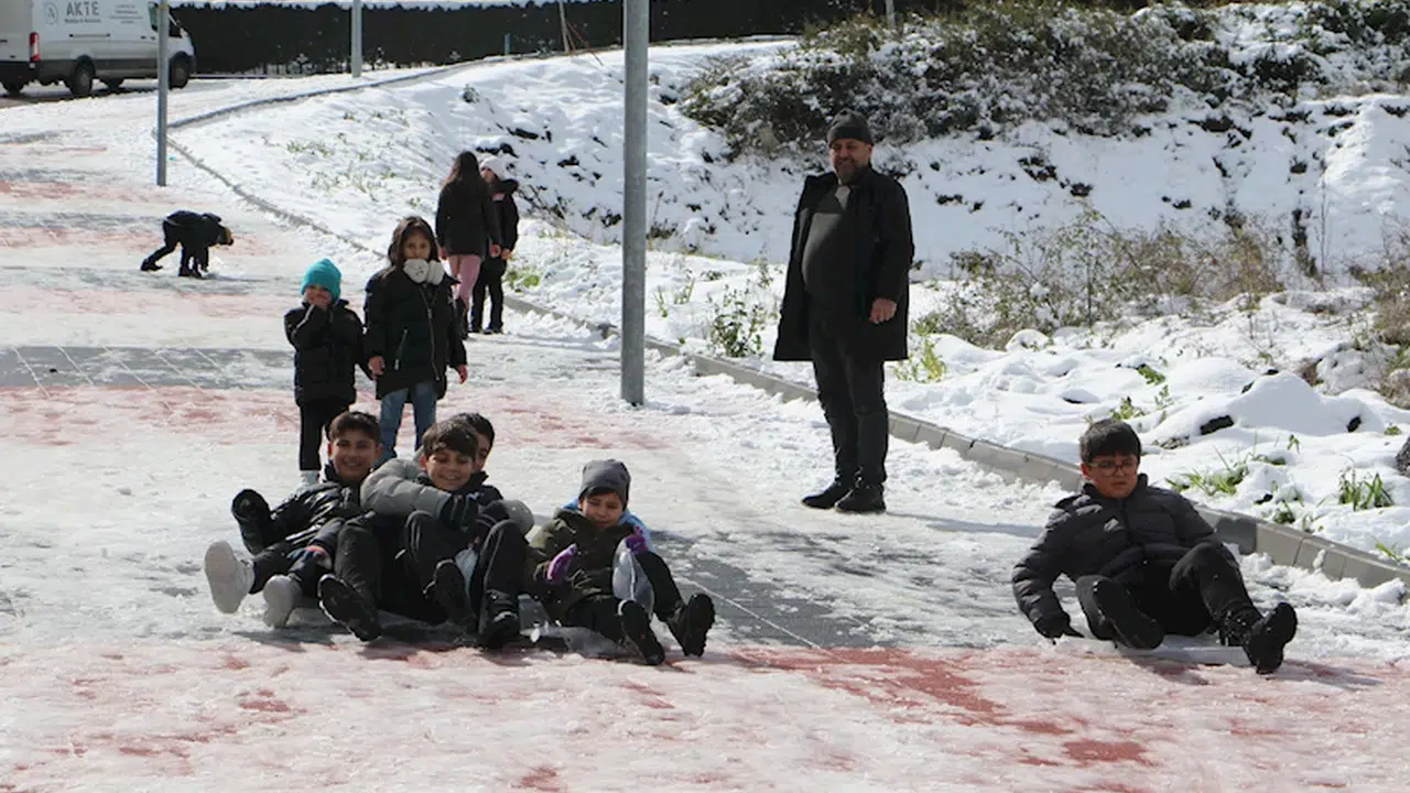 Meteoroloji 10. Bölge Müdürlüğü’nün uyarılarının ardından dün başlayan kar yağışı nedeniyle okullar tatil edildi. Tatil haberini alan öğrencilerin mutluluğu bugün de devam etti. Okulların tatil olmasıyla birlikte aileleri ile sokaklarda ve parklara çıkan çocuklar kar topu oynadı, kardan adam yaptı, tepsi ve poşetlerle kayarak karın keyfini çıkardı. (DHA)