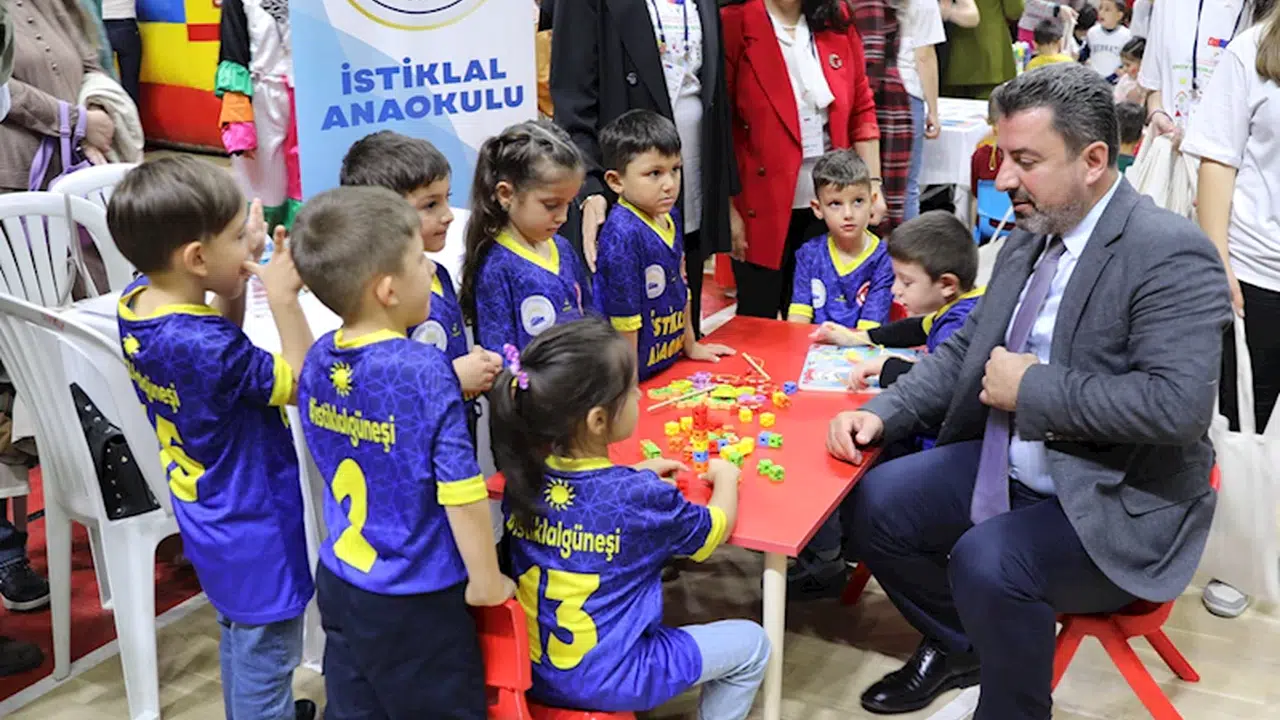 Oyun materyalleriyle donatılan stantlarda anaokulu öğrencilerine öğretmenler tarafından oyun yoluyla öğrenme temalı eğitimler verildi.