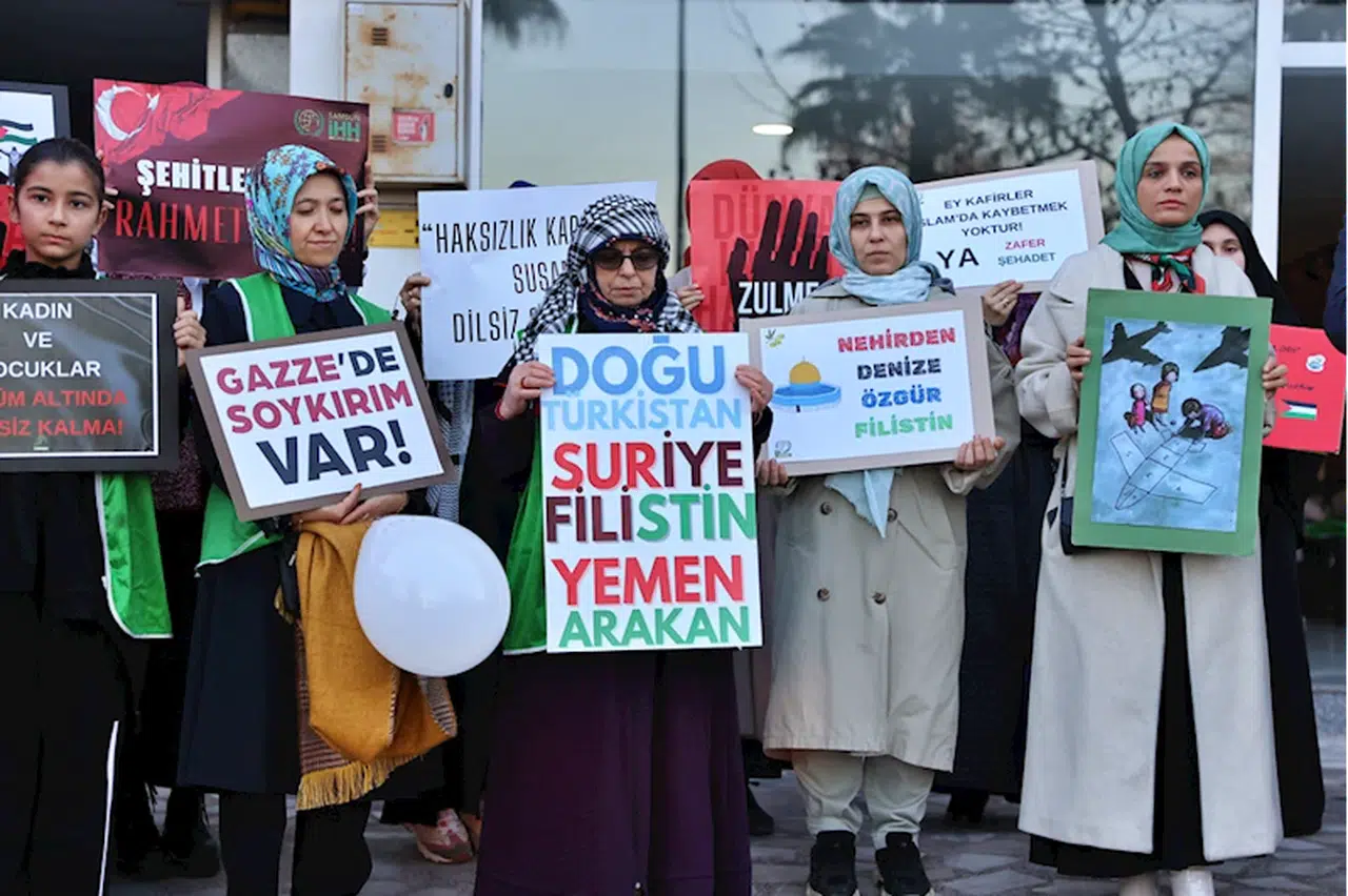 Açıklamanın ardından kalabalık, ellerinde "insan hakları Gazze'yi kapsıyor mu?", "Filistin'e sahip çıkmak için Müslüman olmaya gerek yok", "Gazze'de soykırım var", "Nehirden denize özgür Filistin" yazılı dövizlerle Cumhuriyet Meydanı'na kadar yürüdü.