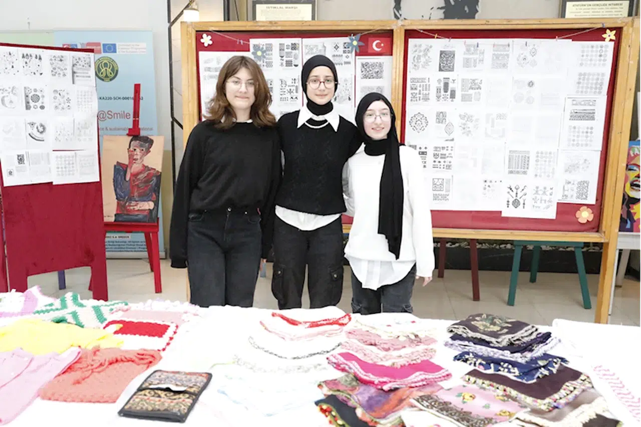 Projeye katılan ve sergiden önce sunum yapan 10. sınıf öğrencilerinden İrem Nur Yiğit ise proje kapsamında Türk motifleri konusunda genel araştırmalar yaptıklarını belirtti.