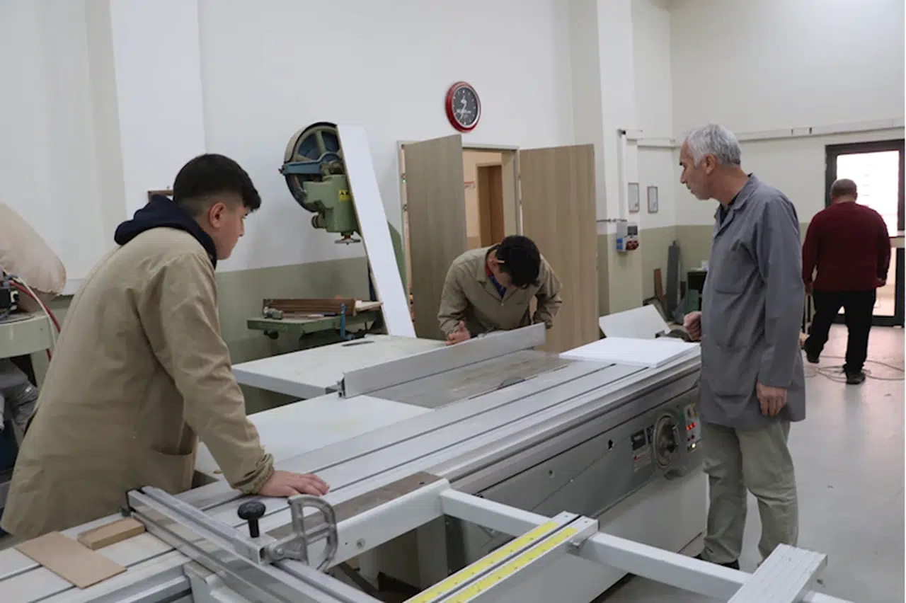 Okulun Teknik Müdür Yardımcısı Onur Tekin, ilçedeki kamu kurum ve kuruluşları, özel sektör ve şahıslardan gelen talepler doğrultusunda mobilya üretimi, bütün bakım, tamir ve tadilatlarını yaptıklarını söyledi.
