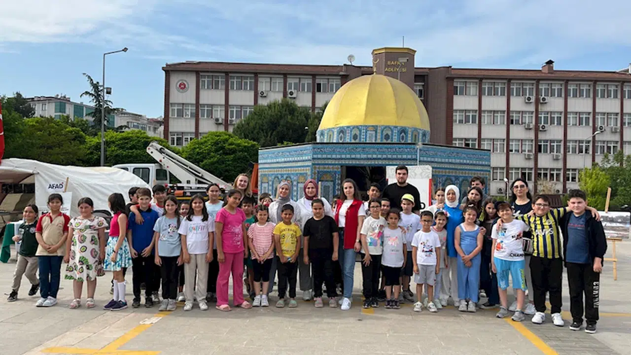 SAMSUN (AA) - Samsun'un Bafra ilçesinde öğrenciler, "Gazze için nöbet alanı"nı ziyaret etti.