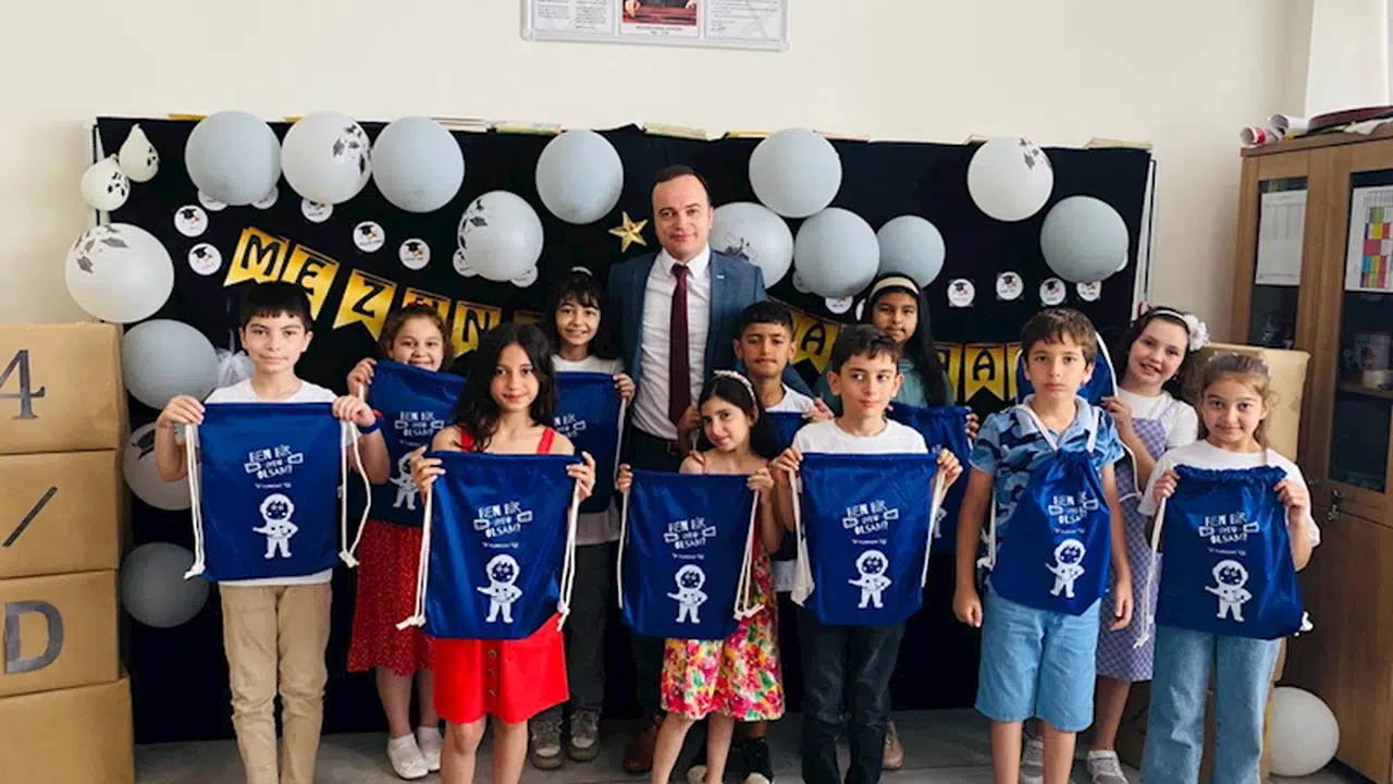 Ekipler, Türksat Uzay Yolculuğu oyununun da tanıtımı yaptıktan sonra öğrencilere karne hediyesi olarak kırtasiye malzemelerinin bulunduğu paketler verdi.