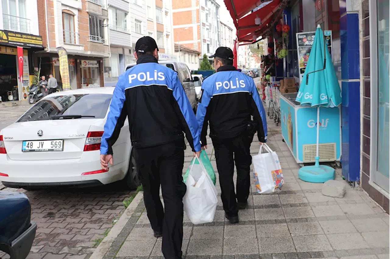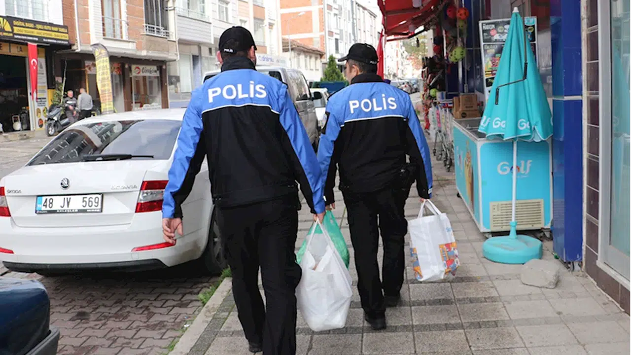 Bu sırada polisler, alışveriş yapan ve yorulan yaşlı bir kadının çantalarını evine götürdü.
