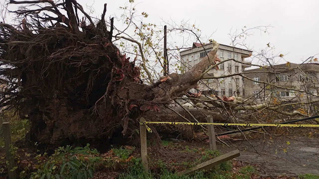 Samsun’da şiddetli rüzğarda 600 yıllık çınar ağacı devrildi