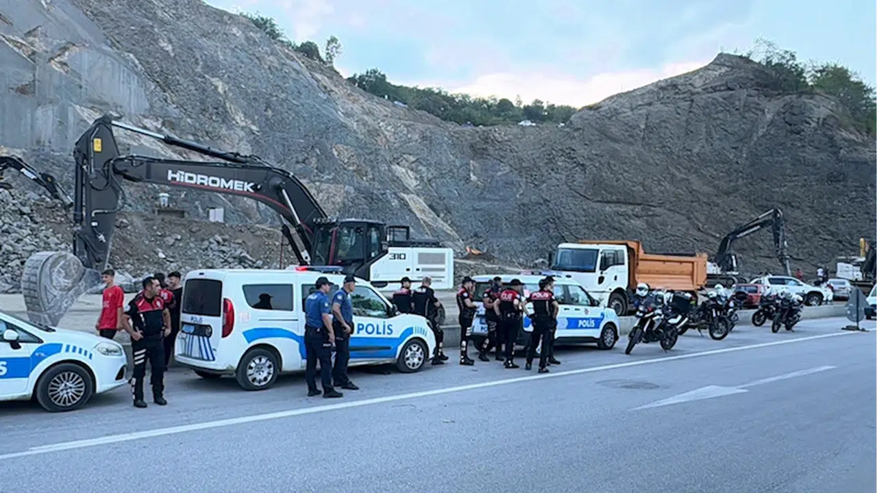 Kirazlık mevkisinde bulunan taş ocağında yapılan kontrollü patlatma sırasında fırlayan taşlar, Samsun-Trabzon kara yoluna fırladı.