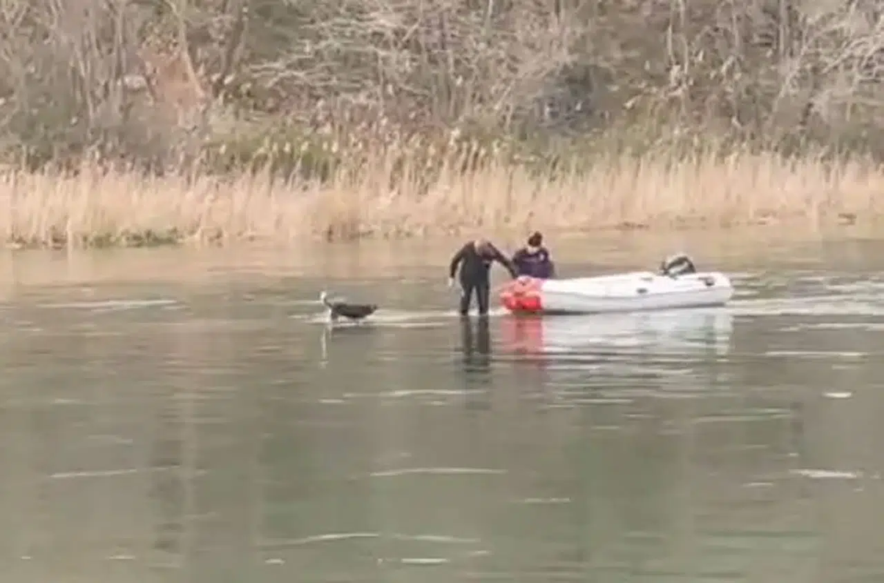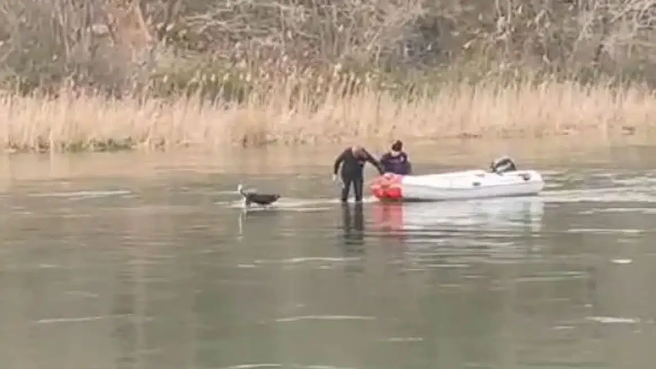 Samsun'un Bafra ilçesinde, Kızılırmak Nehri'nde mahsur kalan köpeğe itfaiye ekipleri ulaştı.
