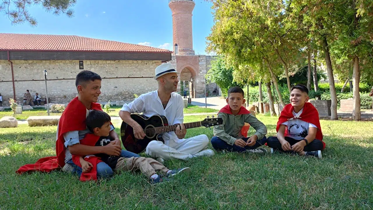 Zile ilçesi Sağır Mahallesi’nde 30 Ağustos Zafer Bayramı'nda Ali Haydar Kütük (14), Mert Kütük (12), Arda Akay (12) ve Poyraz Akay (5) Türk bayrağı açarak, Murat Evgin’in bestelediği 'Şehit' türküsünü söyledi. Saat 15.00 sıralarında sokak sokak gezen çocuklardan 2’si Türk bayrağı açarken, 2'si ise ellerindeki bayrağı sallayıp, yüksek sesle türküyü seslendirdi. Mahalle sakinlerinden alkış alan o anlar, cep telefonu kamerasıyla kayda alındı.