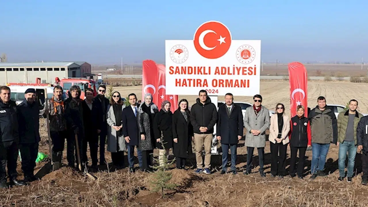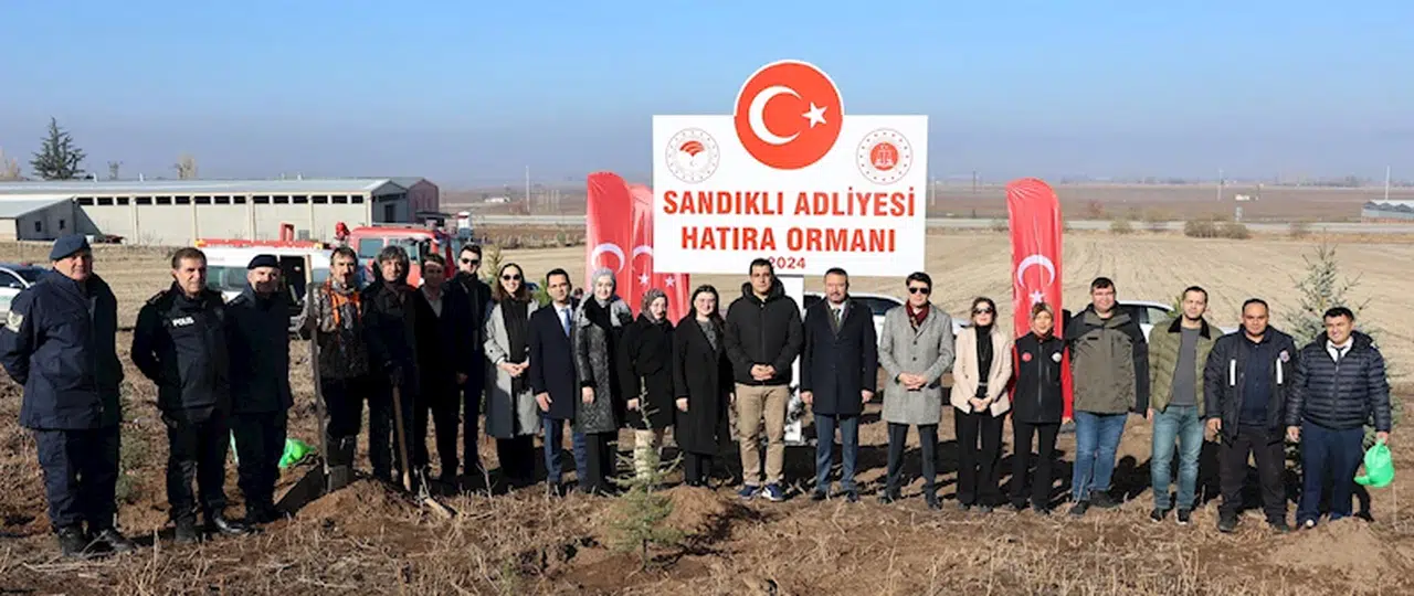Sandıklı Adliyesi tarafından hayata geçirilen Hatıra Ormanı projesi kapsamında, fidan dikim etkinliği yapıldı. Program, Sandıklı Kaymakamı Önder Çengel, Belediye Başkanı Adnan Öztaş, Cumhuriyet Başsavcısı Hasan Köroğlu ve ilçe protokolünün katılımıyla gerçekleşti. Adliye Hatıra Ormanı'nda düzenlenen etkinlikte, protokol üyeleri tarafından 100'ün üzerinde çam ağacı fidanı dikildi. Yapılan açıklamada, doğaya katkı sağlamak ve gelecek nesillere yeşil bir miras bırakmak amacıyla fidan dikim programının düzenlendiği bildirildi.