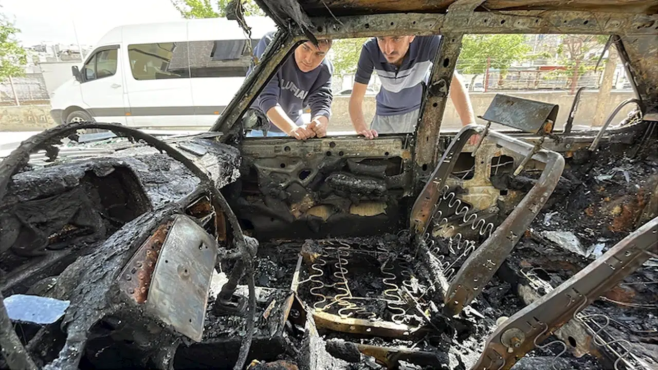 Kundaklanan araçlardan birinin sahibi olan Melikşah Kılıç da yangında kendi minibüsünün de bulunduğu 9 aracın büyük hasar gördüğünü söyledi.