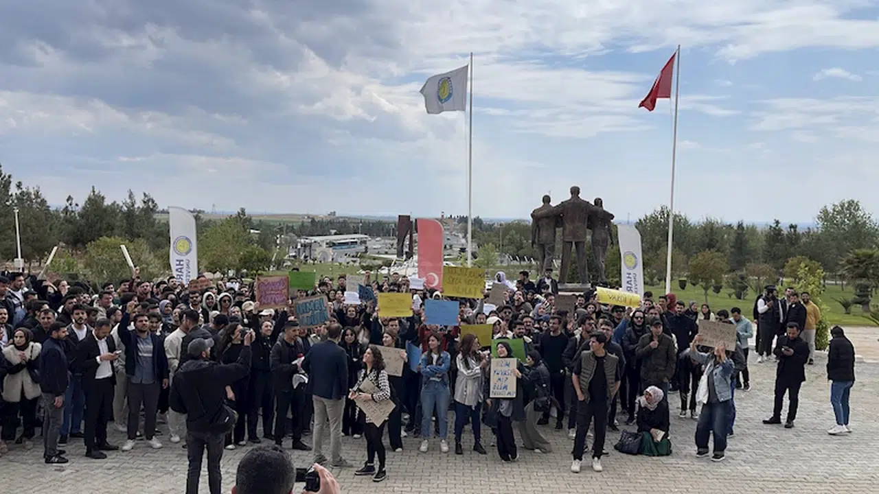 Ömer ŞULUL/ŞANLIURFA, (DHA)- ŞANLIURFA’da Harran Üniversitesi Osman Bey Kampüsü kavşağında, başıboş sokak köpeklerinden kaçarken çıktığı yolda araç çarpması sonucu hayatını kaybeden üniversite öğrencisi Sevda Özkaya (27) için öğrencileri rektörlük binası önünde eylem yaptı.