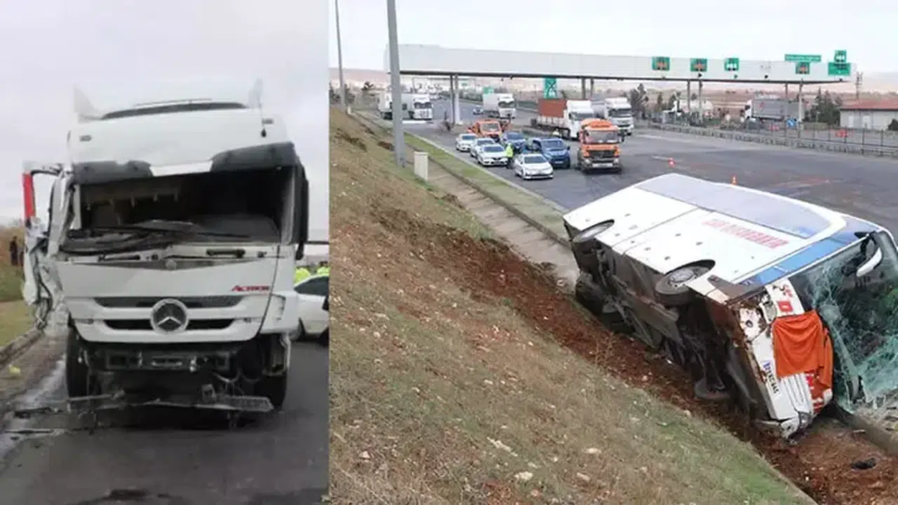 Kaza, öğleden sonra Şanlıurfa-Gaziantep otoyol gişelerinde meydana geldi. Diyarbakır’dan İzmir’e giden A.E. yönetimindeki 21 KC 665 plakalı yolcu otobüsüne, arkasından gelen C.U.’nun kullandığı 33 BHS 34 plakalı TIR çarptı. Çarpmanın etkisiyle kontrolden çıkan otobüs, devrilerek yan yattı.