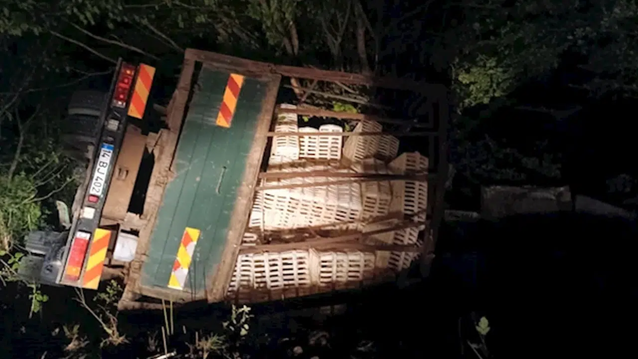 Şarampole devrilen canlı tavuk yüklü kamyonun sürücüsü yaralandı; onlarca tavuk da öldü