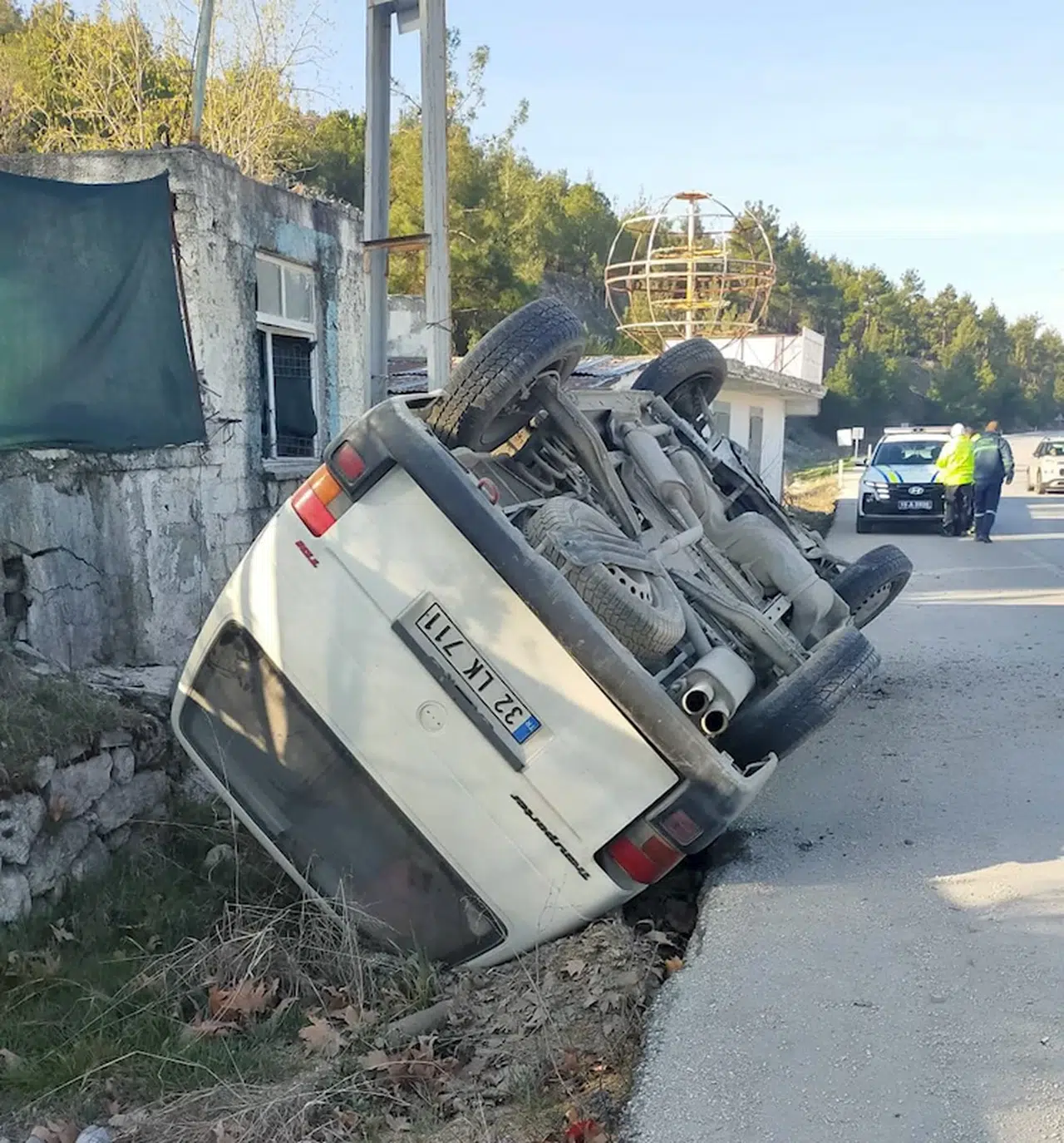 Mesut MADAN/BURDUR, (DHA)- BURDUR'da takla atan otomobilde bir kişi yaralandı.