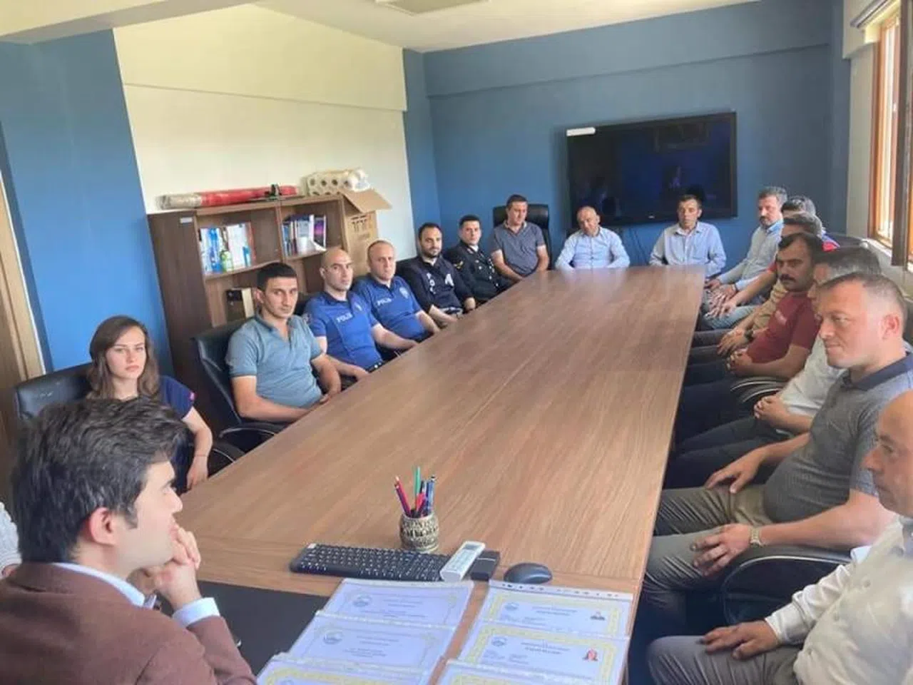 Kaymakam Tugay Kalkanlı, deprem bölgesinde görev yapan kamu kurumu çalışanları ile kaymakamlık binasında bir araya geldi.