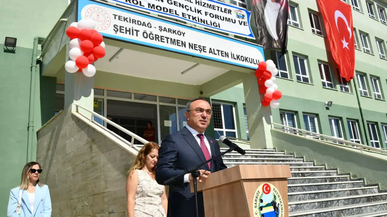 Şarköy Şehit Öğretmen Neşe Alten İlkokulu'nda düzenlenen etkinliğe Tekirdağ Valisi Recep Soytürk, Vali Yardımcısı Musa Aydemir, Şarköy Kaymakamı Ahmet Naci Helvacı, Şarköy Belediye Başkanı Alpay Var,