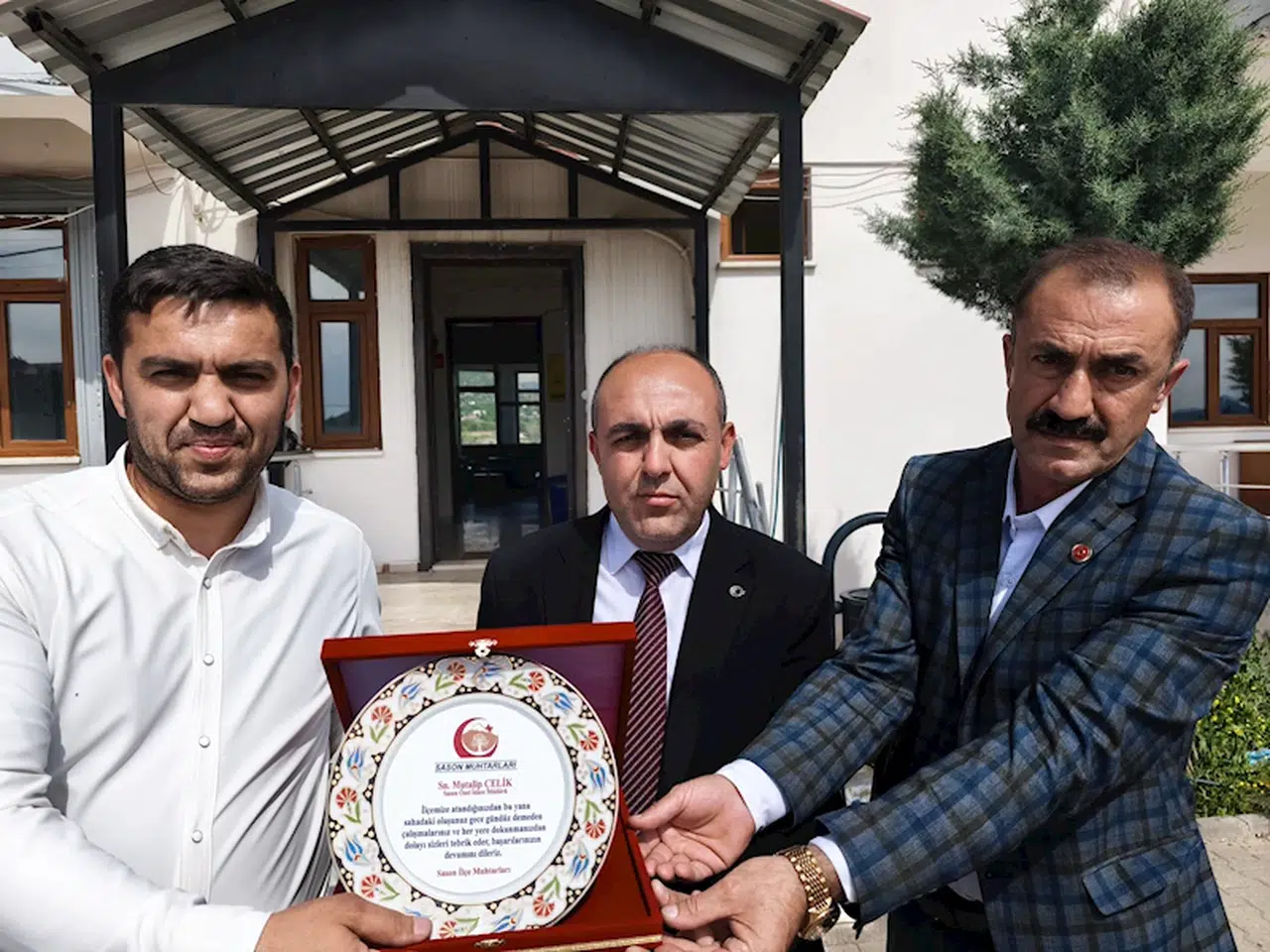 Sason ilçesi köy muhtarları, çalışmalarından dolayı yaklaşık 1 yıldır görevini sürdüren İlçe Özel İdare Müdürü Mutalip Çelik’e teşekkür plaketi verdi. Plaketini muhtarlar adına Hayrettin Cengiz’den alan Çelik, kış aylarında karla mücadele çalışmalarında, daha önce 20 güne yakın kapalı kalan köy yollarının bu yılki çalışmalar sayesinde en fazla 5 gün kapalı kaldığını ifade ederek, şöyle dedi: