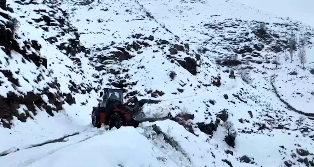 Sason ilçesinde etkili olan yoğun kar yağışı nedeniyle 9 köy ve 25 mezranın yolu kapandı. İl Özel İdare Müdürlüğü karla mücadele ekipleri, kapanana yolların açılması için çalışmalara başladı. (DHA)