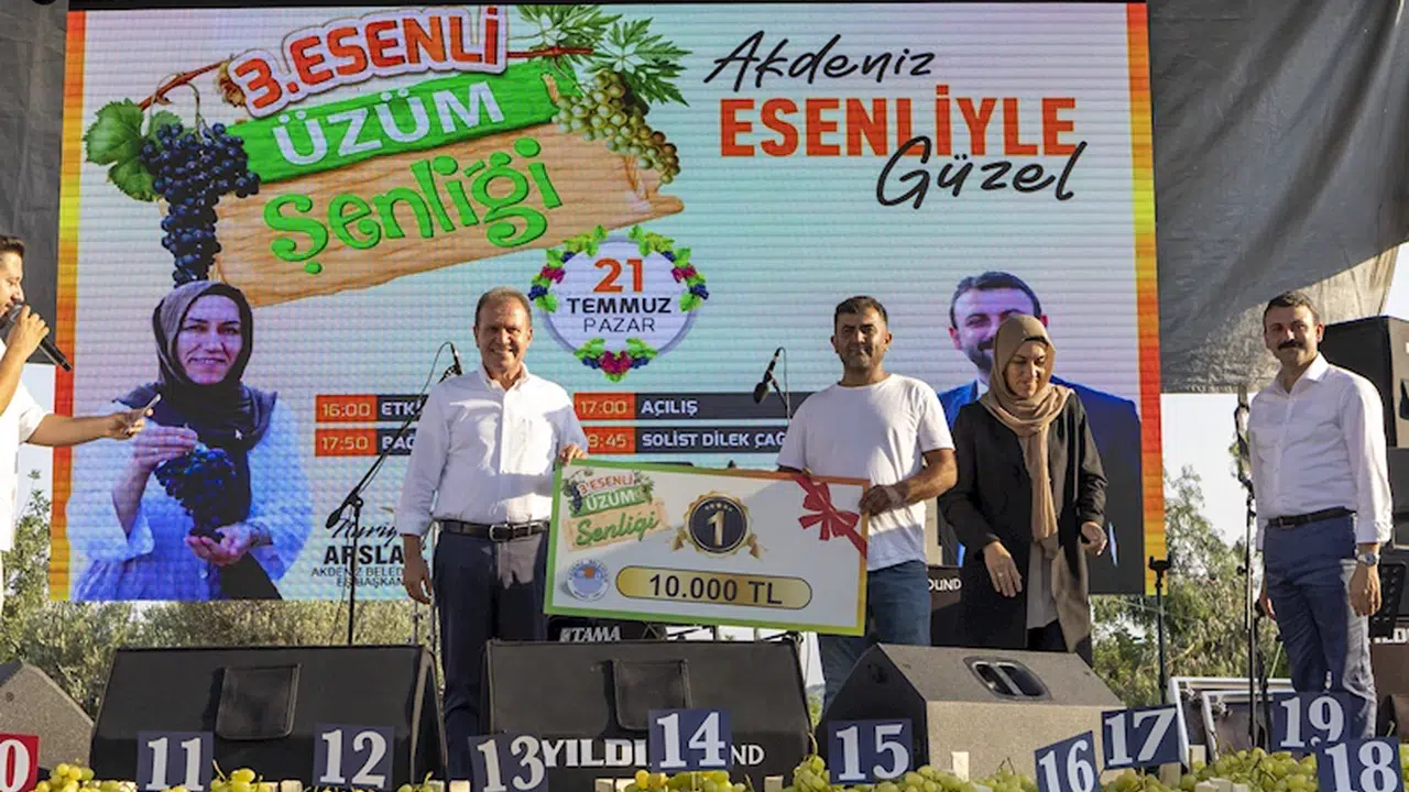 CHP Mersin Milletvekilleri Gülcan Kış, Hasan Ufuk Çakır, Akdeniz Belediyesi Başkanı Hoşyar Sarıyıldız, Toroslar Belediye Başkanı Abdurrahman Yıldız, Akdeniz Ziraat Odası Başkanı Musa Yılmaz ve Esenli Mahallesi Muhtarı Feyyaz Görgülü’nün de birer konuşma yaptığı 3. Esenli Üzüm Şenliği’nde Başkan Seçer, En İyi Üzüm Yetiştiriciliği Yarışması’nda 1. olan Osman Budaklı isimli üreticiye ödülü teslim etti.