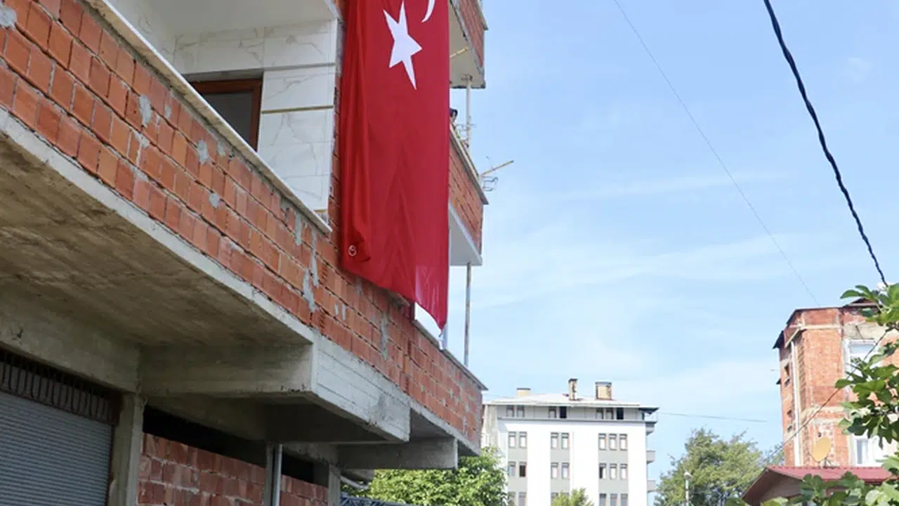 Ailenin yaşadığı binaya, Büyükşehir Belediyesi itfaiye ekiplerince Türk bayrağı asıldı.