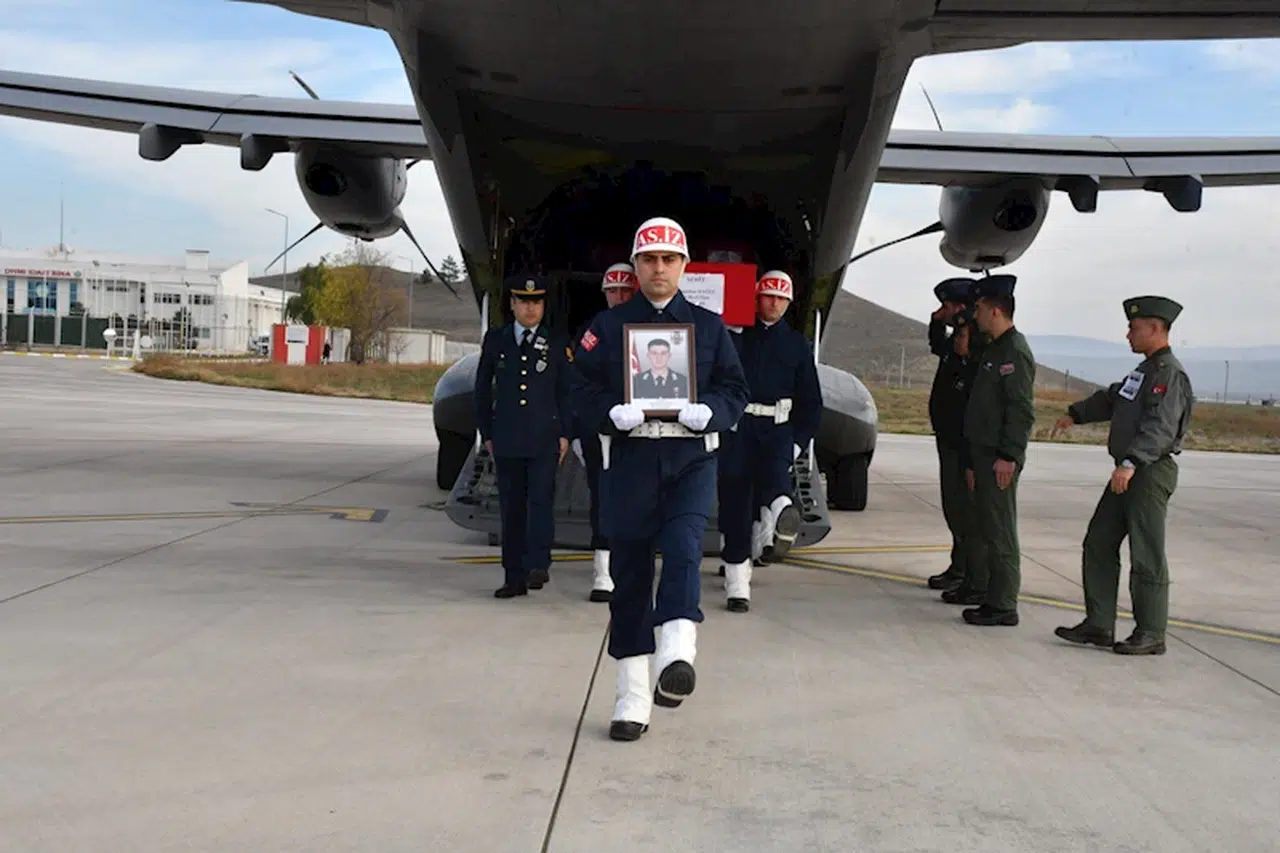 Şehidin cenazesi, memleketi Samsun’un Vezirköprü ilçesine götürülmek üzere yola çıkarıldı. (DHA)