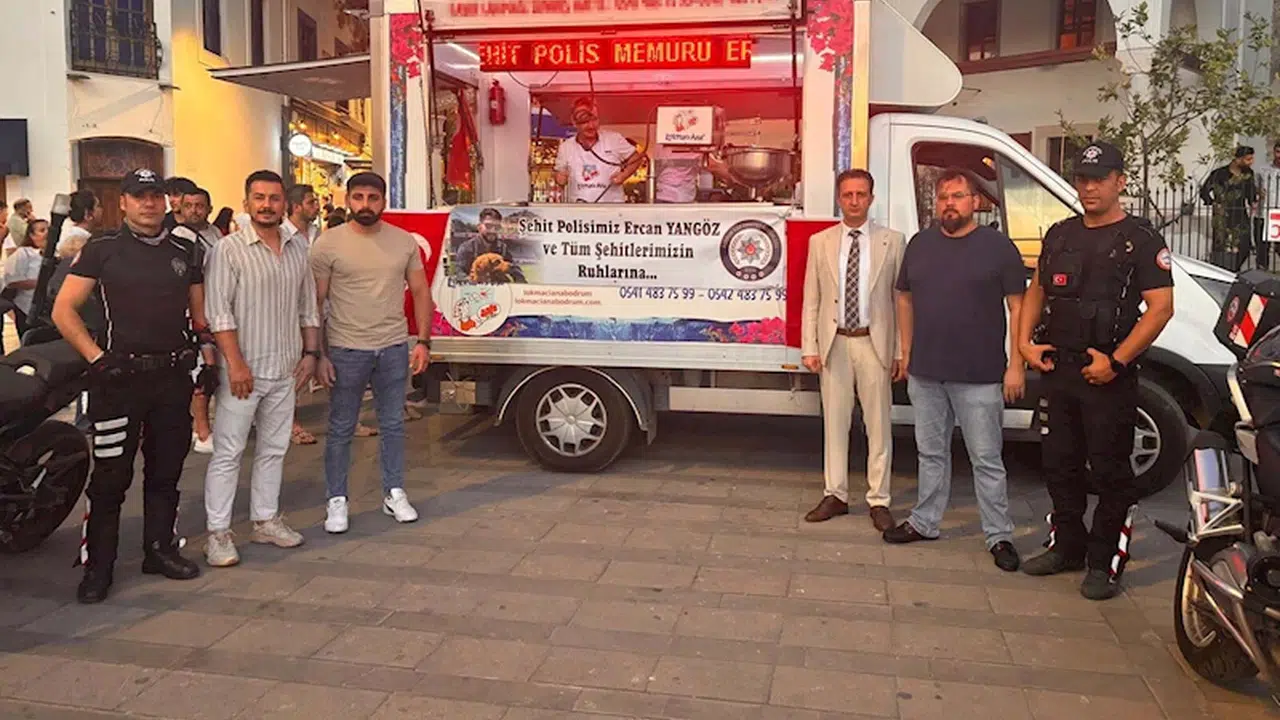 Fırat AKAY/BODRUM(Muğla),(DHA)-MUĞLA'nın Bodrum ilçesinde, silah kaçakçılığı yaptıkları ileri sürülen suç çetesine yönelik yapılan operasyonda şehit olan Ercan Yangöz (26), şehadetinin 3’üncü yılında meslektaşları tarafından dualarla anıldı. Şehit Yangöz için polis ekipleri lokma hayrında bulundu.