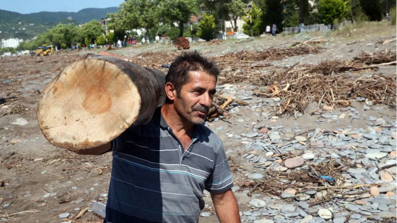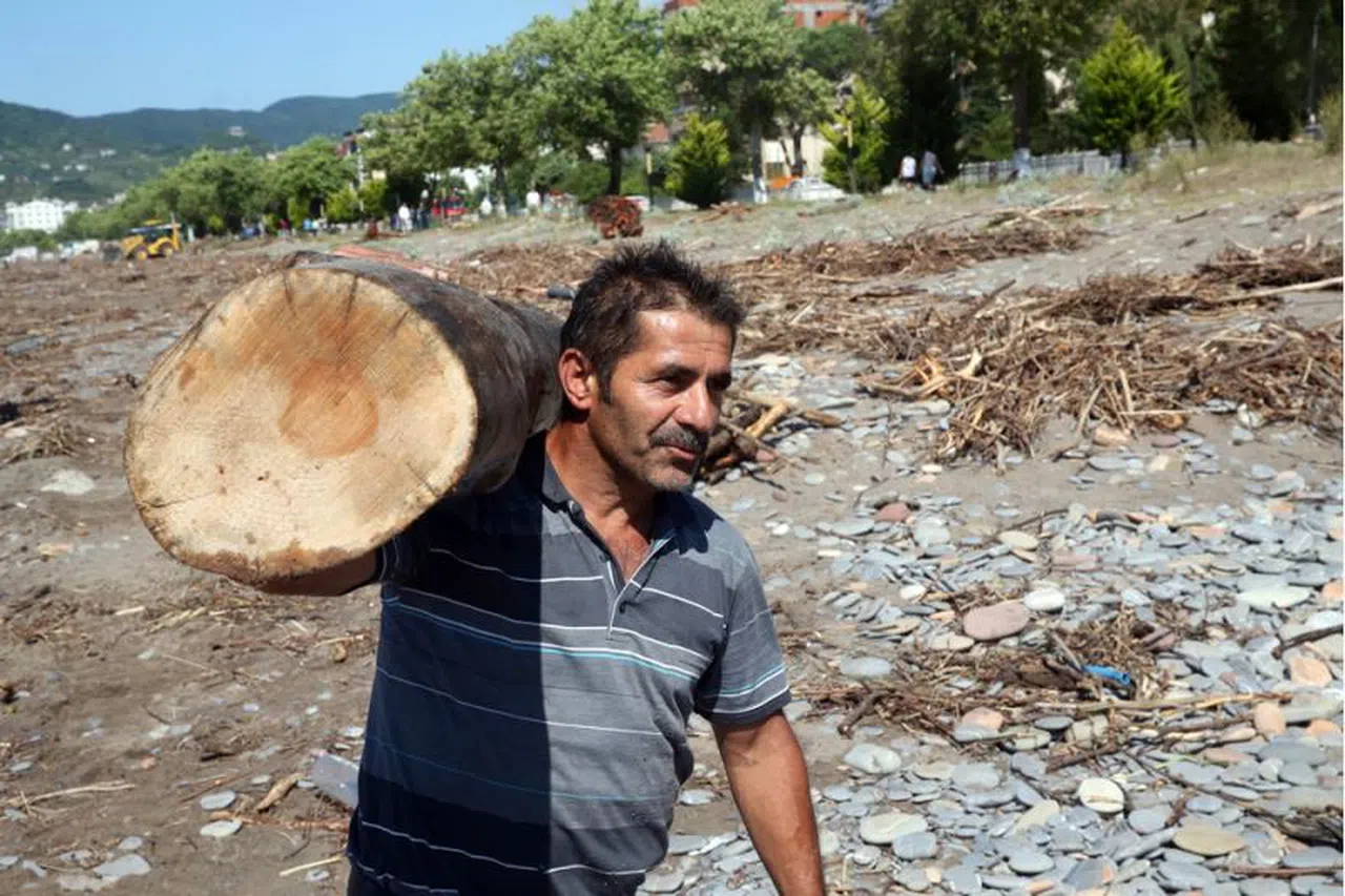 Sahilden odun toplayan Erdoğan Kas, bölgede yoğun yağış olduğunu belirterek, "Cide ilçesinde yaşıyorum. Dün akşamki yağmur ırmakları ve dereleri taşırdı. Çay boyunca gelen odunlar sahile vurdu. Bizler de bu odunları toplayıp kışın yakıyoruz." dedi.
