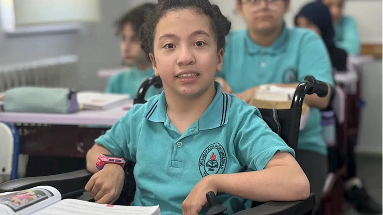 Hem fizik tedavi hem de okulunun kendisini biraz zorladığını dile getiren Öztürk, "Özellikle okulumu, öğretmenlerimi ve arkadaşlarımı çok seviyorum." dedi.