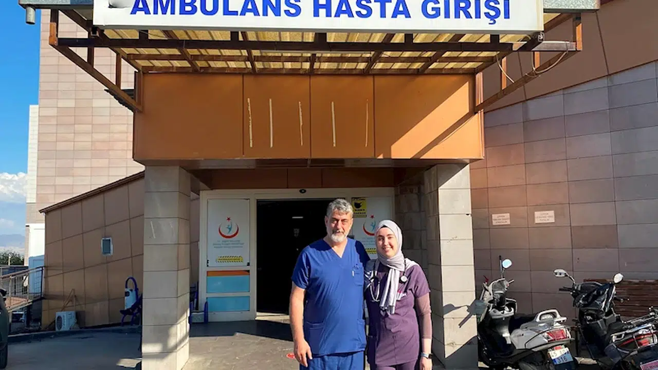 Nurettin DOĞAN/ALAŞEHİR (Manisa), (DHA)- MANİSA'nın Alaşehir ilçesinde Şerife Karaman (24), 6 yıllık tıp eğitimi sonrası babası Şevket Karaman'ın (48) hemşire olarak çalıştığı devlet hastanesine doktor olarak atandı. Doktor Şerife Karaman ve babası Şevket Karaman, acil serviste birlikte çalışmanın mutluluğunu yaşıyor.