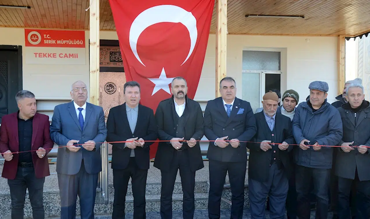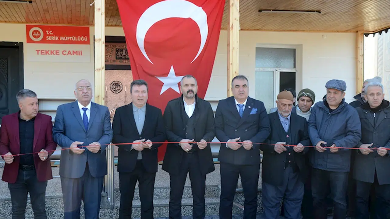 Tekke Mahallesi'nde yaklaşık 5 yıl önce yenilenmesi için yıkılan Tekke Camii'nin açılışı dolayısıyla tören düzenlendi. Programa MHP Antalya Milletvekili Hilmi Durgun, Kaymakam Cemal Şahin, Belediye Başkan Yardımcısı Mehmet Balık, Serik İlçe Müftüsü İbrahim Köksal, MHP İlçe Başkanı Osman Üstünmet, belediye meclis üyeleri, daire müdürleri, muhtarlar, hayırseverler vatandaşlar ve mahalle sakinleri katıldı. Saygı duruşu ve İstiklal Marşı sonrası Kur'an-ı Kerim okundu.