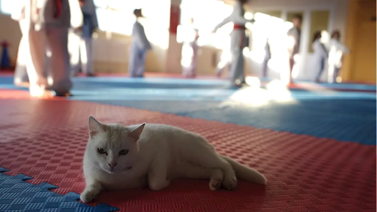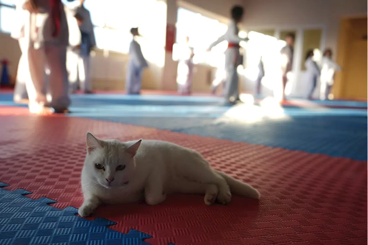 Sevimli kedi "Karate Cat" antrenmanların neşe kaynağı oldu