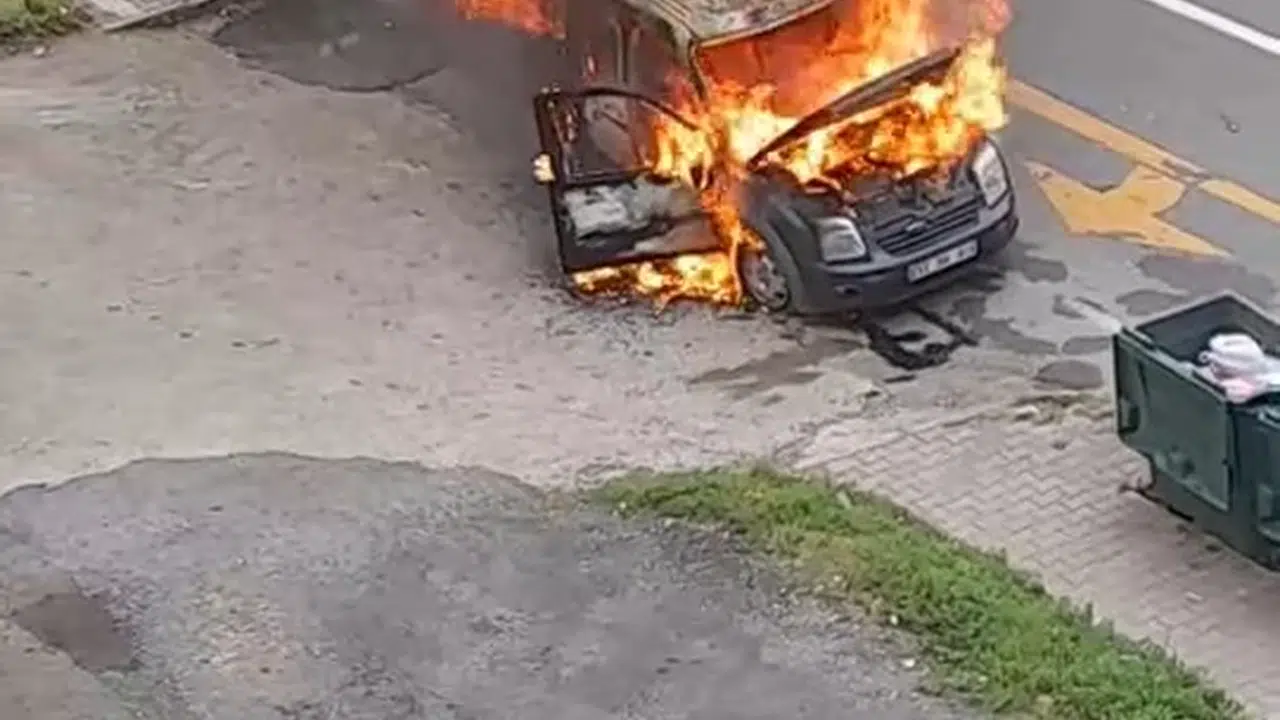 Gülbahar Mahallesi Yenişehir Caddesi'nde seyreden 53 HN 915 plakalı hafif ticari araç, sabah saatlerinde motor kısmından alev aldı. Dumanları fark eden sürücü, aracını durdurup dışarı çıktı. Bu sırada alevler, bir anda tüm aracı sardı. İhbarla adrese gelen itfaiye ekipleri, yangını söndürdü. Hafif ticari aracın alev topuna döndüğü anlar, çevredekiler tarafından cep telefonu kamerasıyla görüntülendi. Görüntülerde; yol kenarındaki otomobilin alev topuna dönmesi ve itfaiye ekiplerinin yangını söndürme anları yer aldı. Hafif ticari araç da kullanılamaz hale geldi. (DHA)