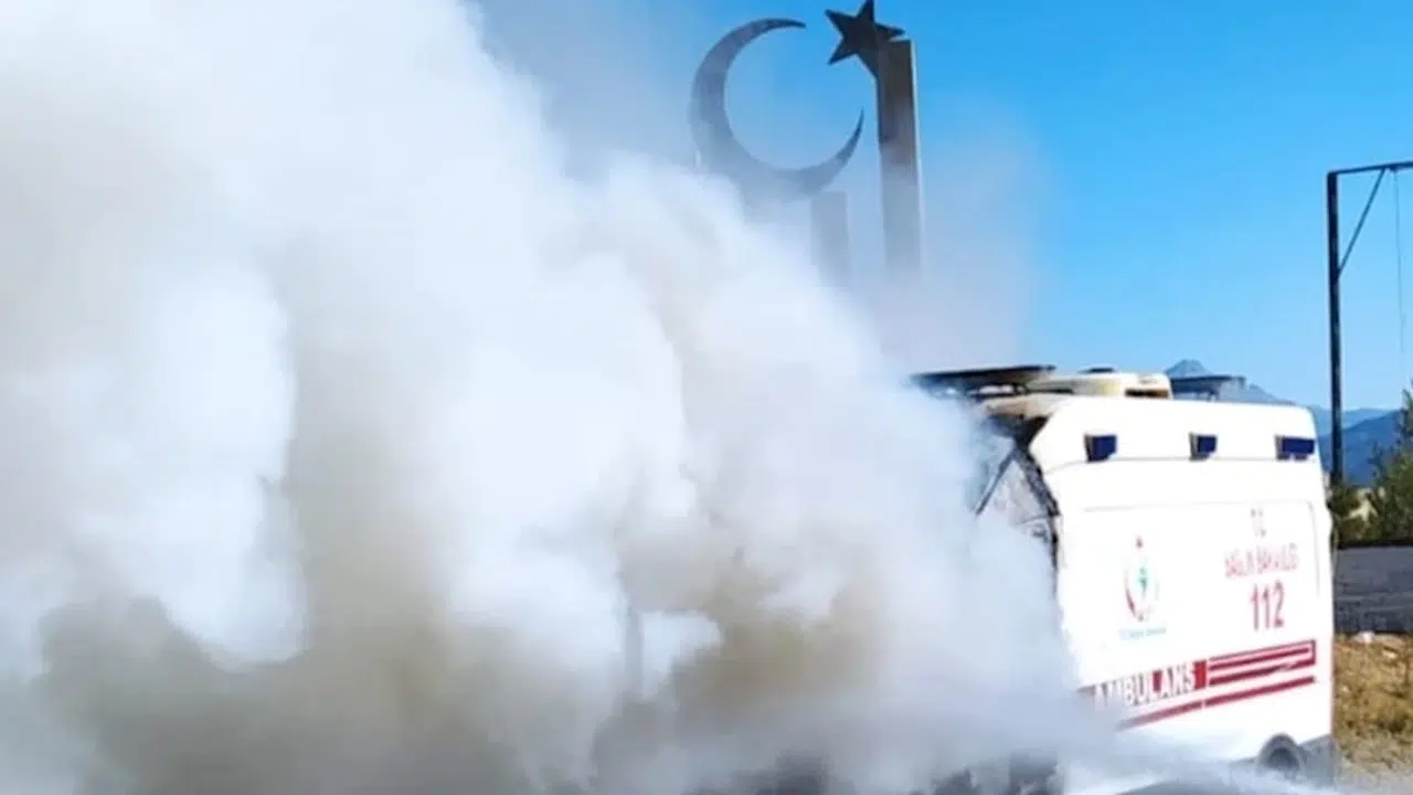 Seyir halindeyken alev alan ambulans kullanılamaz hale geldi