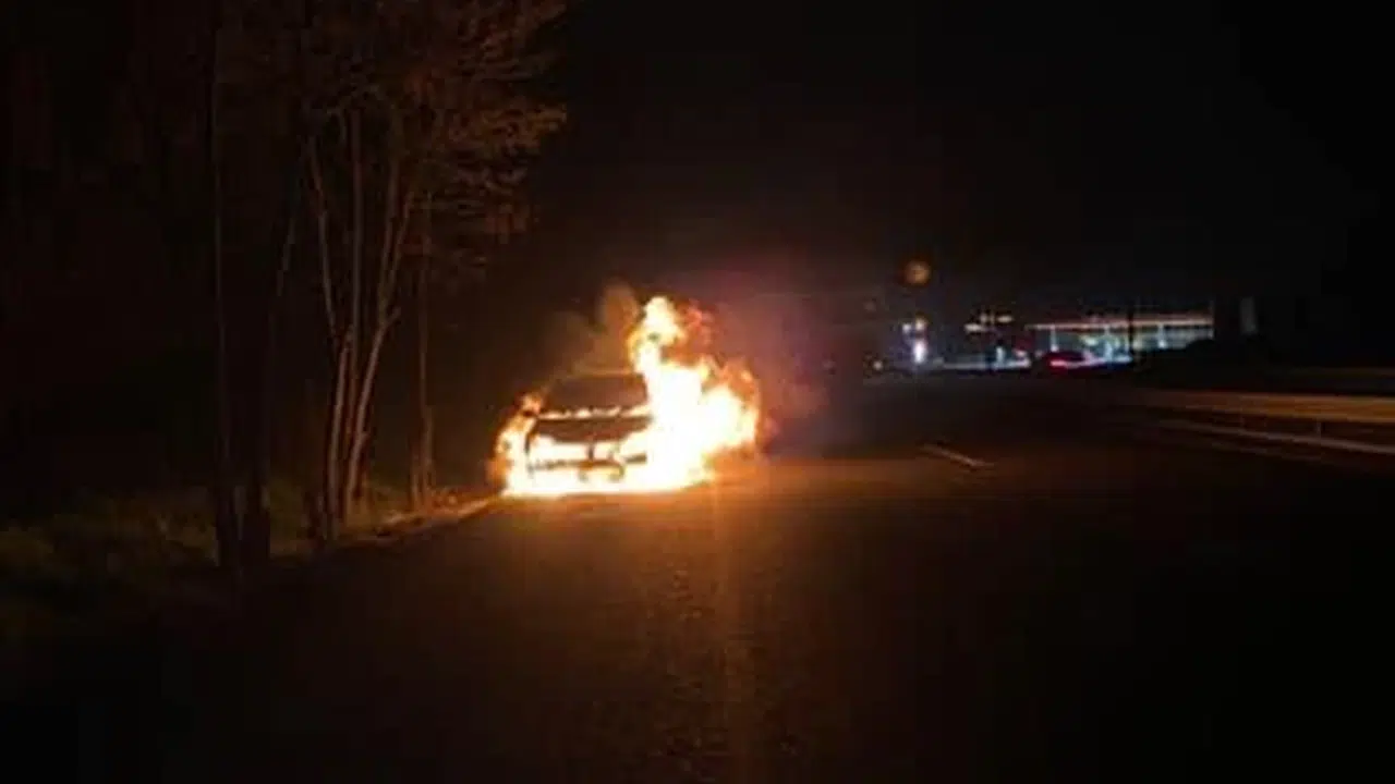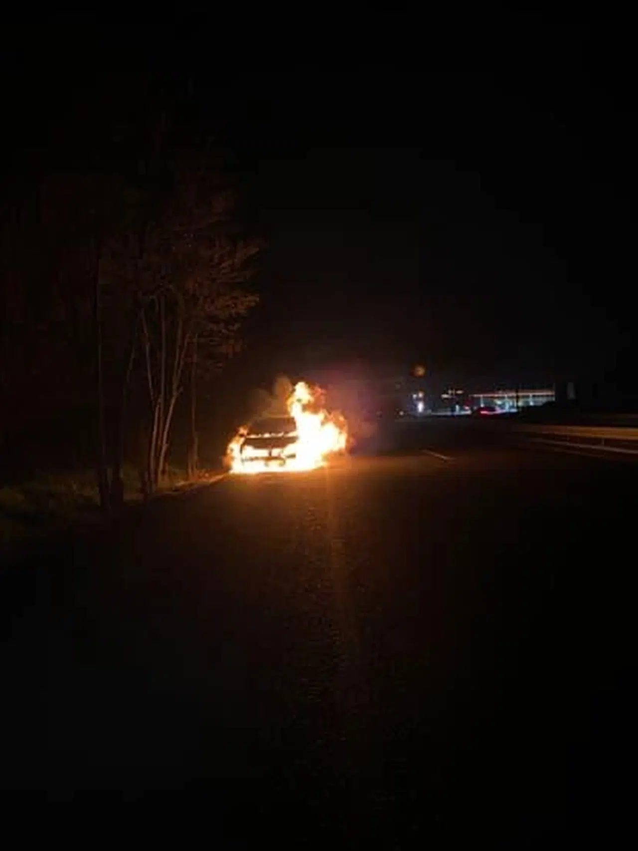 Seyir halindeyken alev alan otomobil kullanılamaz hale geldi