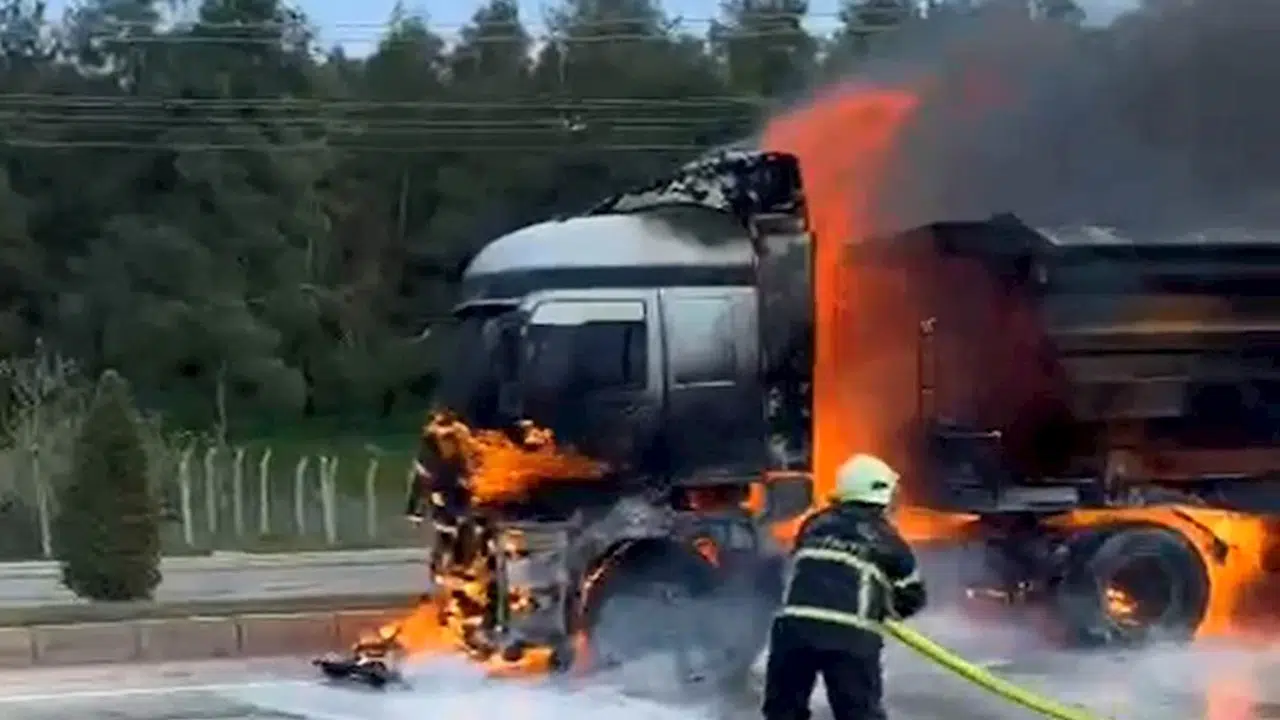 Kahramanmaraş-Adana kara yolunda şoförü ve plakası bilinmeyen hafriyat kamyonundan birden duman yükselmeye başladı. Şoför aracı durdururken, alevler de kamyonu tamamen sardı. İhbarla olay yerine itfaiye ekipleri sevk edildi. Ekipler alevlere müdahale ederken, söndürme çalışmaları sırasında kamyonda patlamalar yaşandı. Yangın söndürülürken, kamyon kullanılamaz hale geldi.