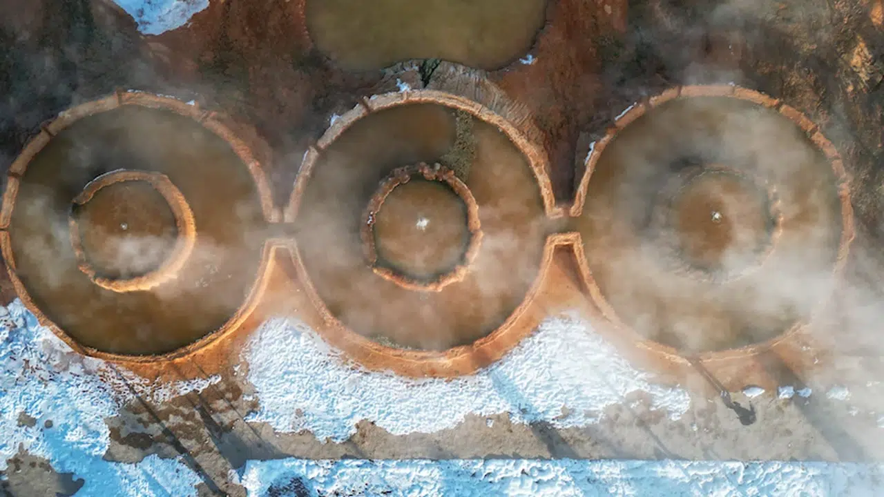 Sivas'ta geçen hafta başlayan kar yağışının ardından etrafı karla kaplanan Altınkale, sıcak ve soğuğun buluştuğu nokta olarak göze çarpıyor. Altınkale'de oluşturulan dairesel havuzlardan çıkan 45 derecelik kükürtlü kaplıca suyunun soğuk havada oluşturduğu buhar, görsel şölen sunuyor. Bir yanda 45 derecelik doğal sıcak su yer alırken, hemen yanında kar ve buz ile temas etmek mümkün oluyor. Bu özelliği ile ön plana çıkan Altınkale, kışın da meraklıların ilgisini çekiyor. (DHA)