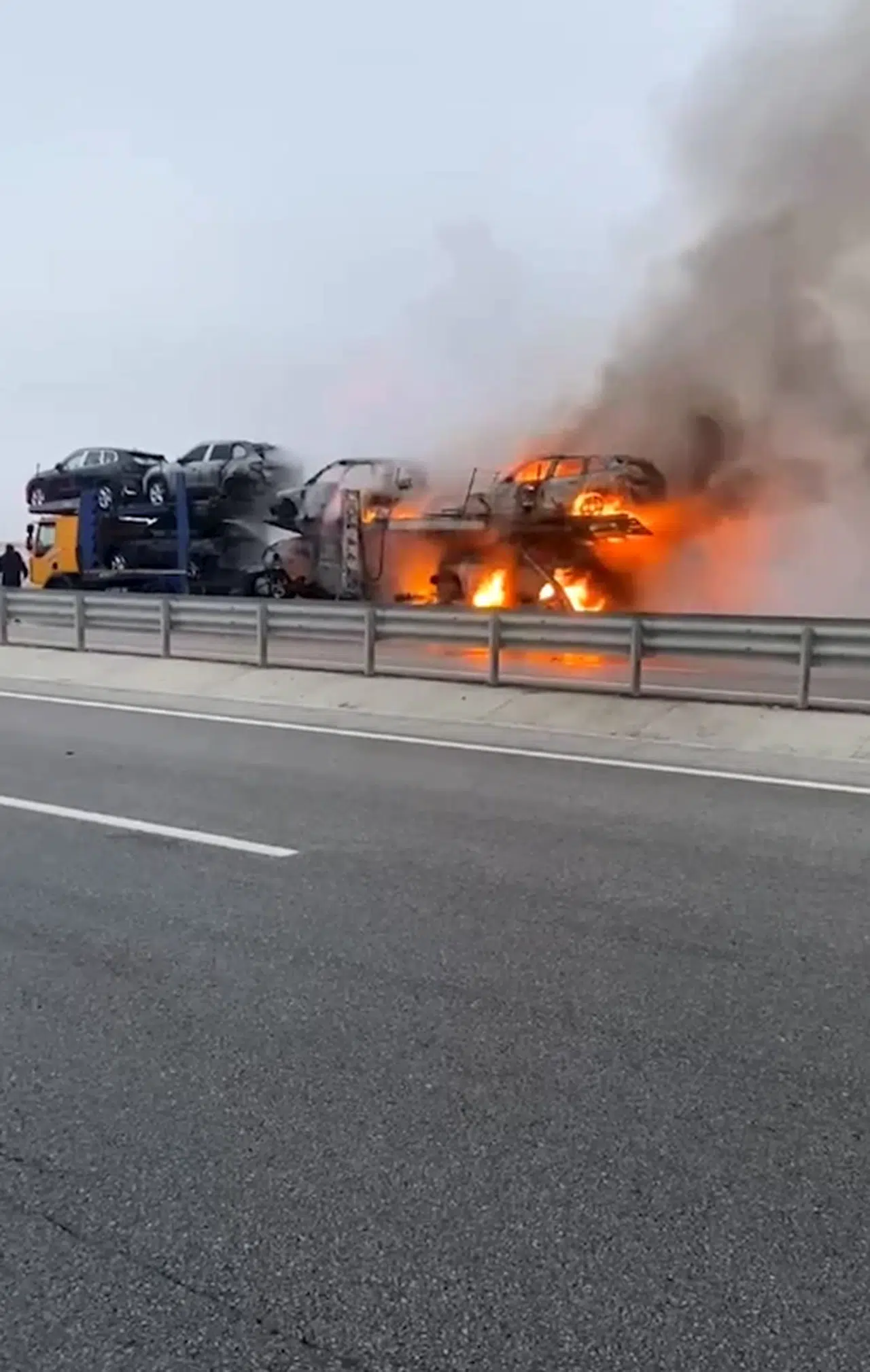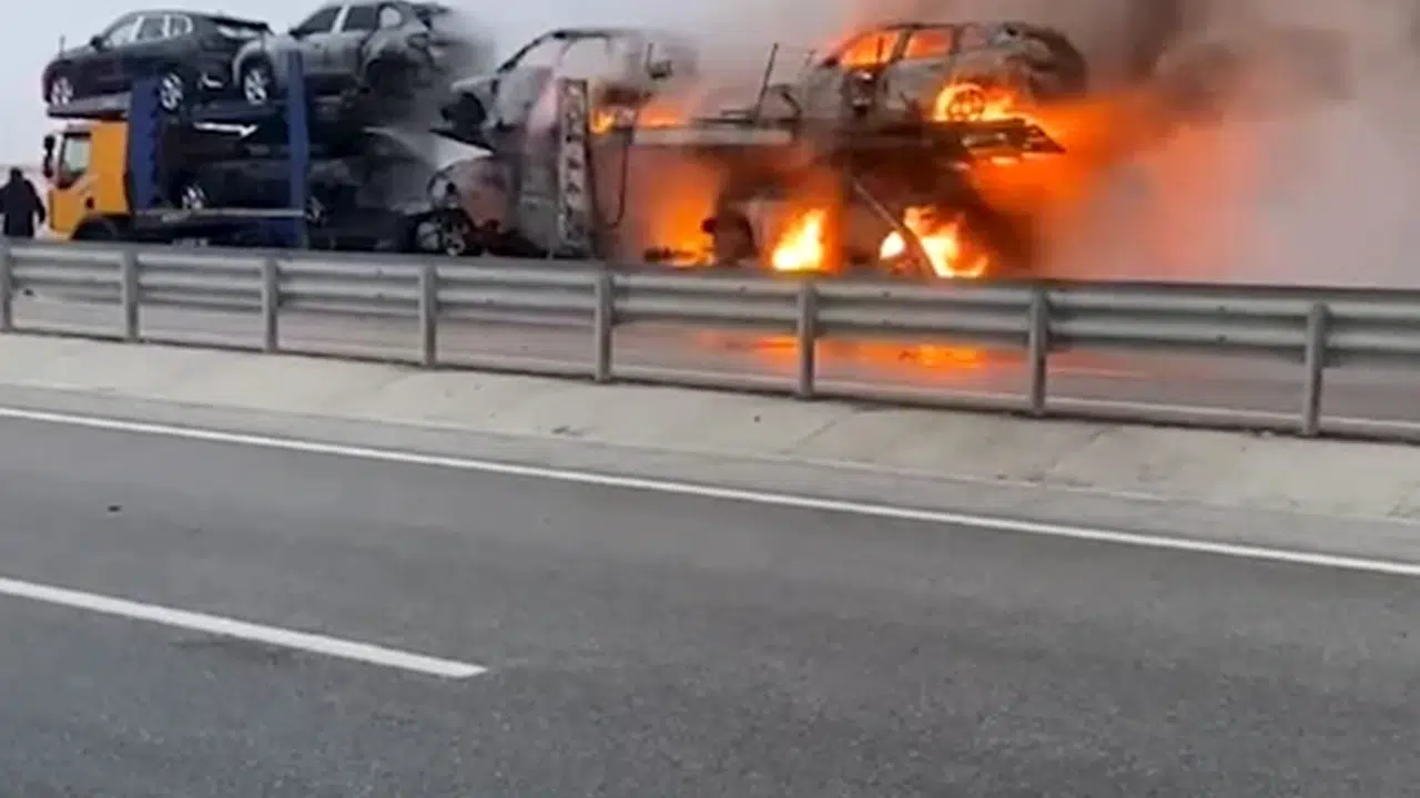 İlyas Kaan TAYTAK/EMİRDAĞ, (DHA)- AFYONKARAHİSAR'da sıfır araç taşınan TIR'da çıkan yangında 6 araç kullanılamaz hale geldi.