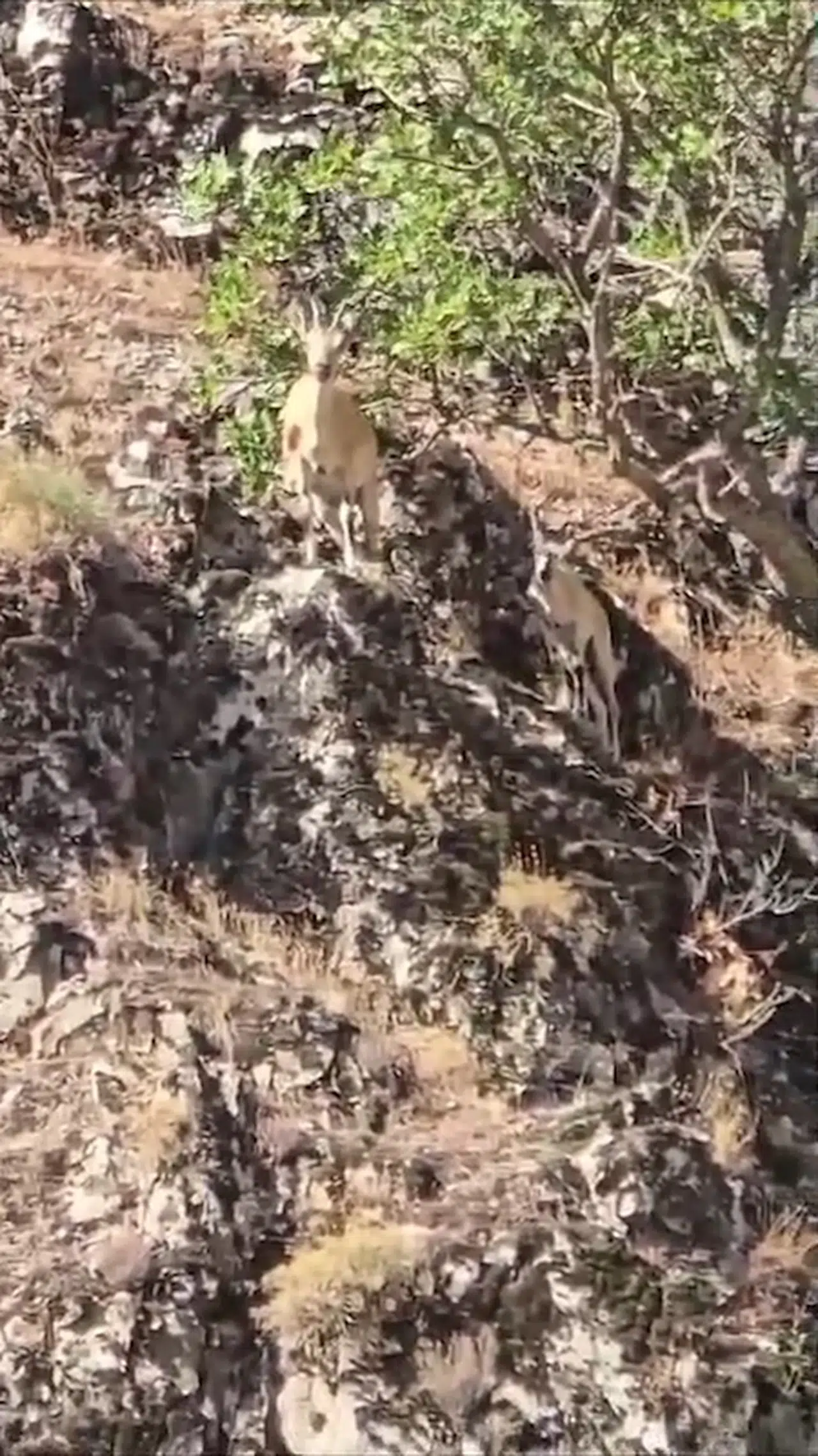 Pervari ilçesi Çavuşlu köyü yakınlarında yamaçlarda gezinen dağ keçileri görüldü. Yoldan geçen ve keçileri fark eden Ali Yılmaz, aracından inerek cep telefonu kamerasıyla o anları görüntüledi. Görüntülerde bir süre gezinen dağ keçileri daha sonra bölgeden ayrılıyor. (DHA)