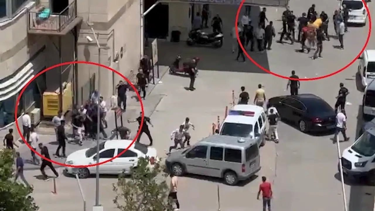 Hastane önünde karşılaşan yaralı yakınları arasında tekrar kavga çıktı. Burada önlem alan polis ekipleri, havaya uyarı ateşi açıp, kavga edenlere biber gazıyla müdahale etti. Cep telefonu kamerasına da yansıyan kavgada 1 kişi yaralanırken, bazı şüpheliler gözaltına alındı. Olayla ilgili inceleme başlatılırken, yaralıların durumlarının iyi olduğu öğrenildi.(DHA)