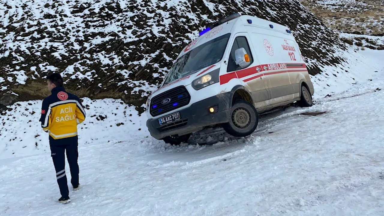 Siirt’te kara saplanan ambulans kurtarılıp hastaya ulaştırıldı