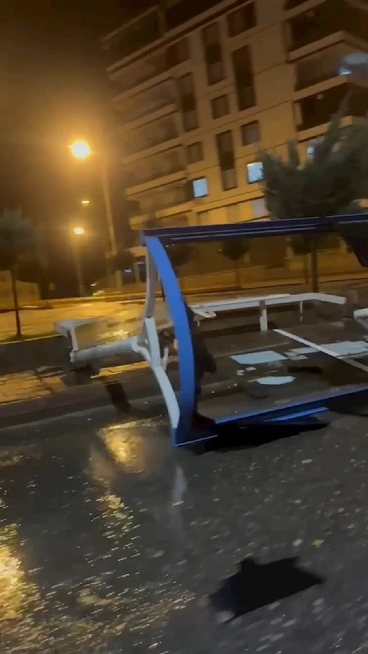 Kentte gece saatlerinden itibaren etkili olan sağanak ve kuvvetli rüzgar, hayatı olumsuz etkiledi. Rüzgar nedeniyle Veyselkarani Mahallesi 1903’üncü Sokak'ta bulunan otobüs durağı ve inşaat alanını çevreleyen demir bariyerler devrildi. Durakta bekleyenin olmamasının, olası faciayı önlediği belirtildi. (DHA)