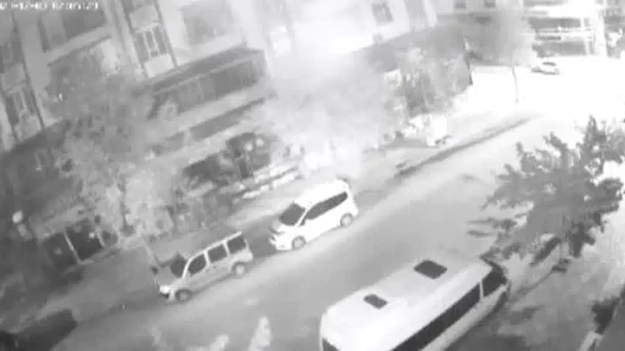 O anlar çevredeki bir iş yerinin güvenlik kamerasınca görüntülendi.
