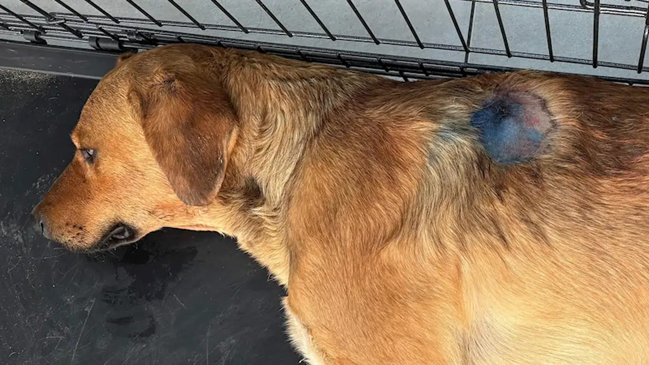 Erdek Jandarma Komutanlığı, köpeği vuran kişi veya kişilerin tespit edilmesi için inceleme başlattı. (DHA)