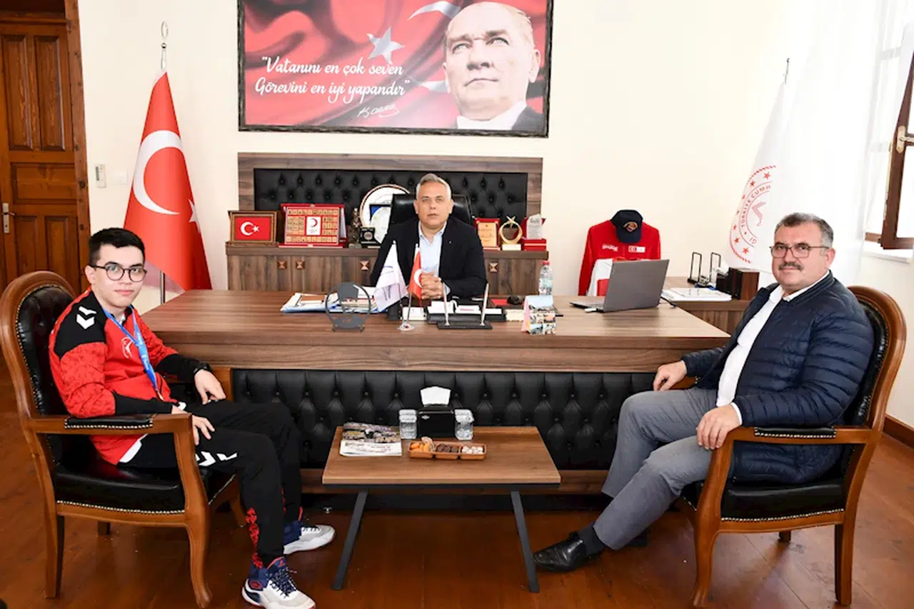 Göksu Anadolu Lisesi öğrencisi Mahmut Arda Doğan, 16-17 Nisan tarihlerinde Estonya’da düzenlenen Avrupa Taekwondo Poomsae ve Para Poomsae Şampiyonası’nda Erkekler P53 kategorisinde şampiyon olarak büyük bir başarıya imza attı. Doğan’ın elde ettiği Avrupa şampiyonluğunun ardından, İlçe Milli Eğitim Müdürü Fevzi Kültiğin Eroğlu başarılı sporcuyu makamında kabul etti. Ziyarette, Doğan’ın gösterdiği üstün performans ve azmi takdirle karşılanırken, Eroğlu, genç sporcuyu ve emeği geçen okul müdürü Salih Karakuş ve öğretmenlerini tebrik etti. (DHA)